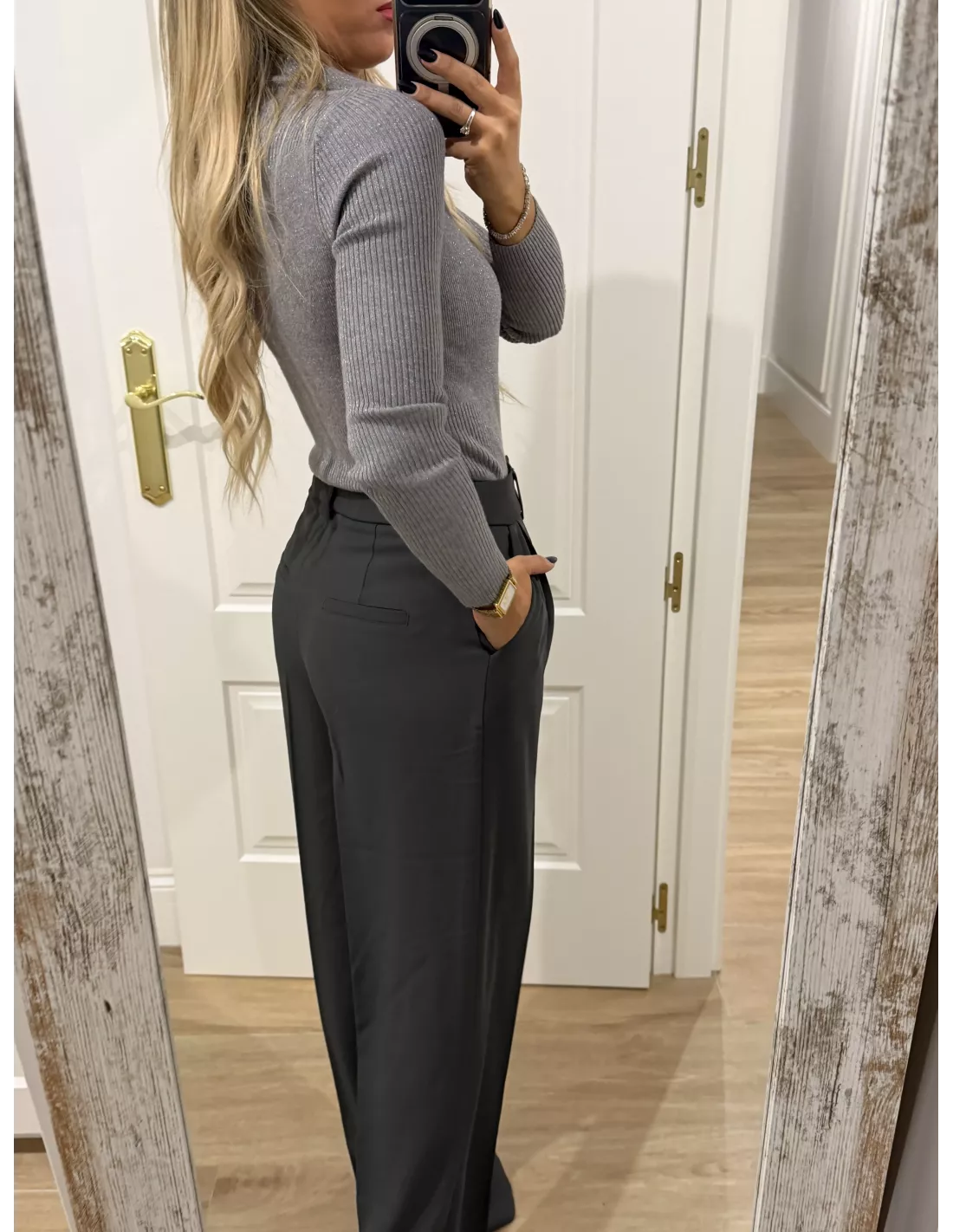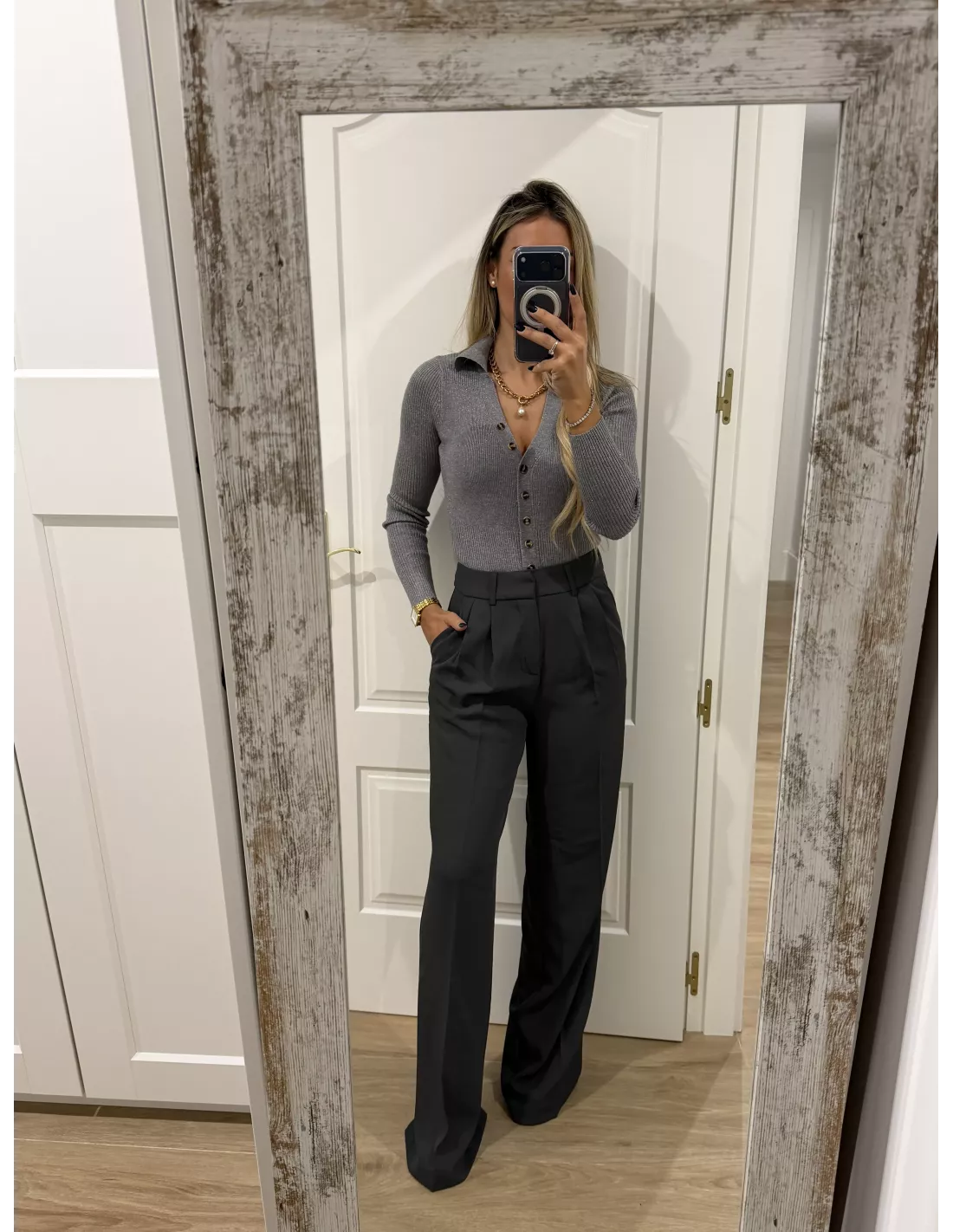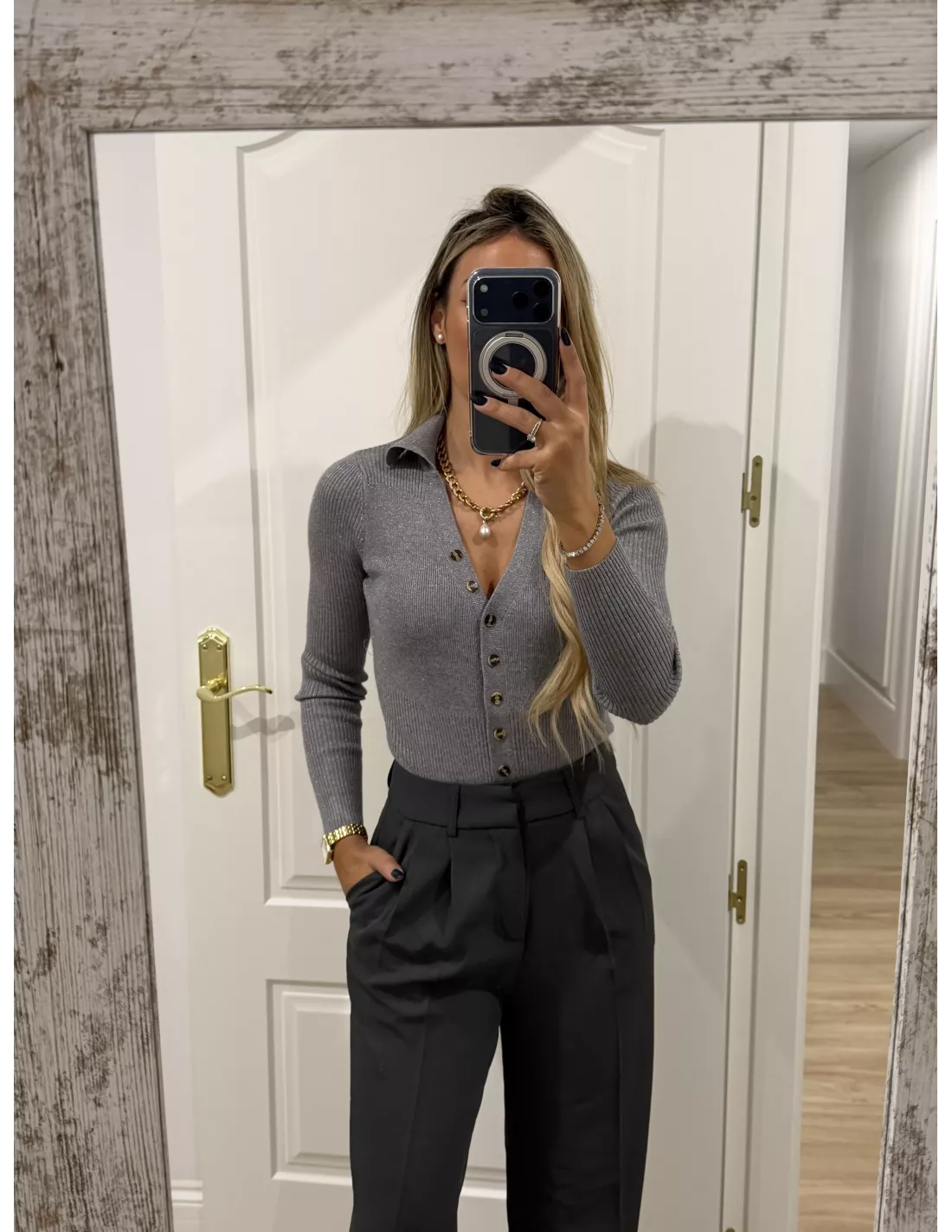 Body de punto gris con botones