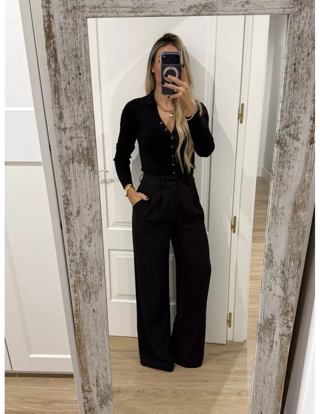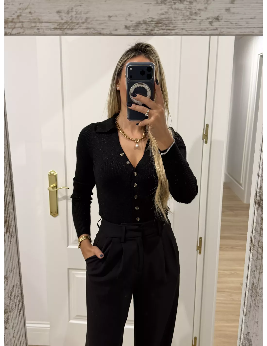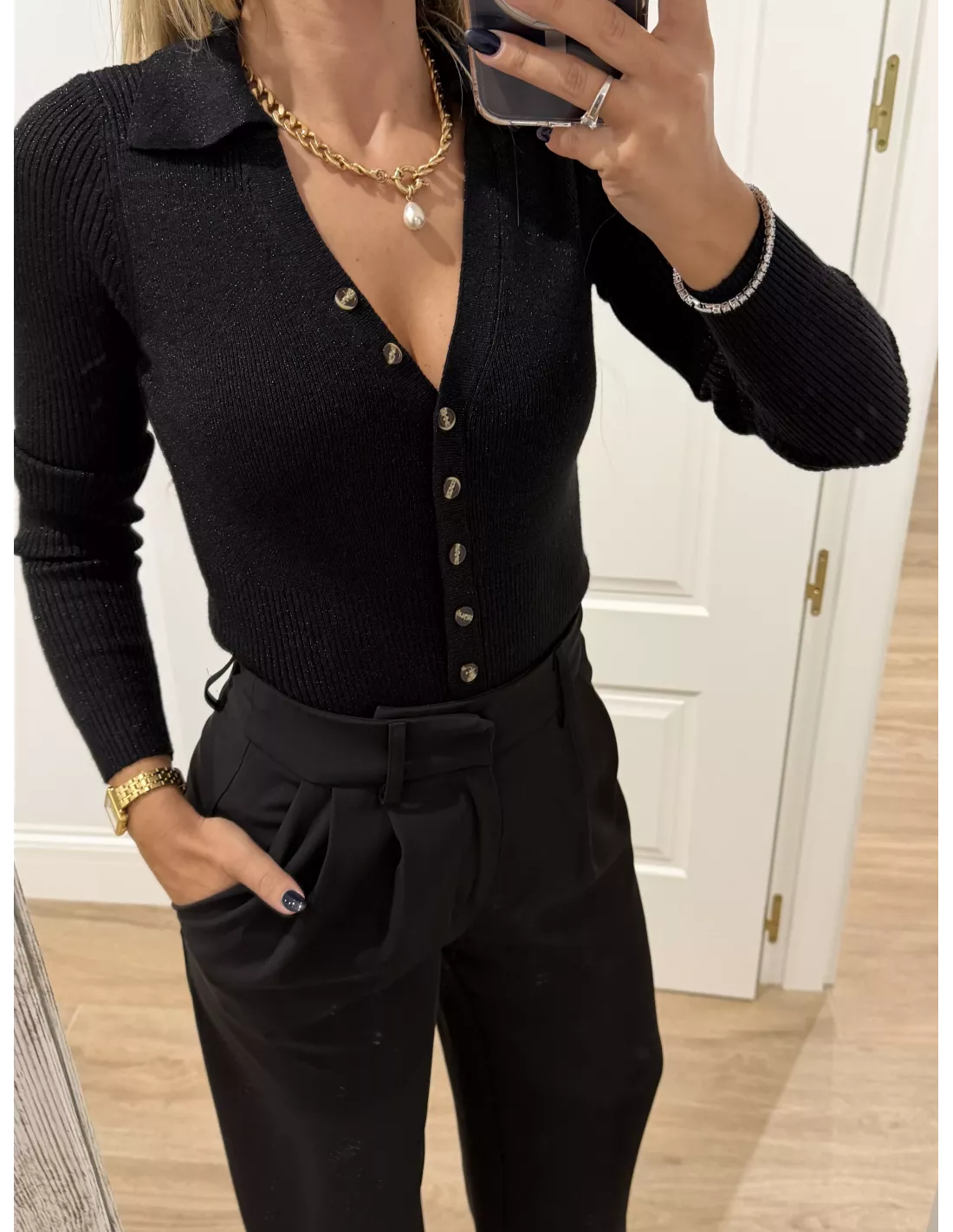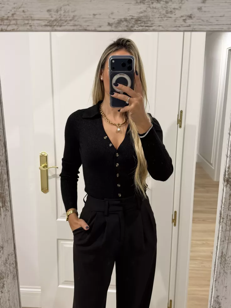 Body de punto negro con botones