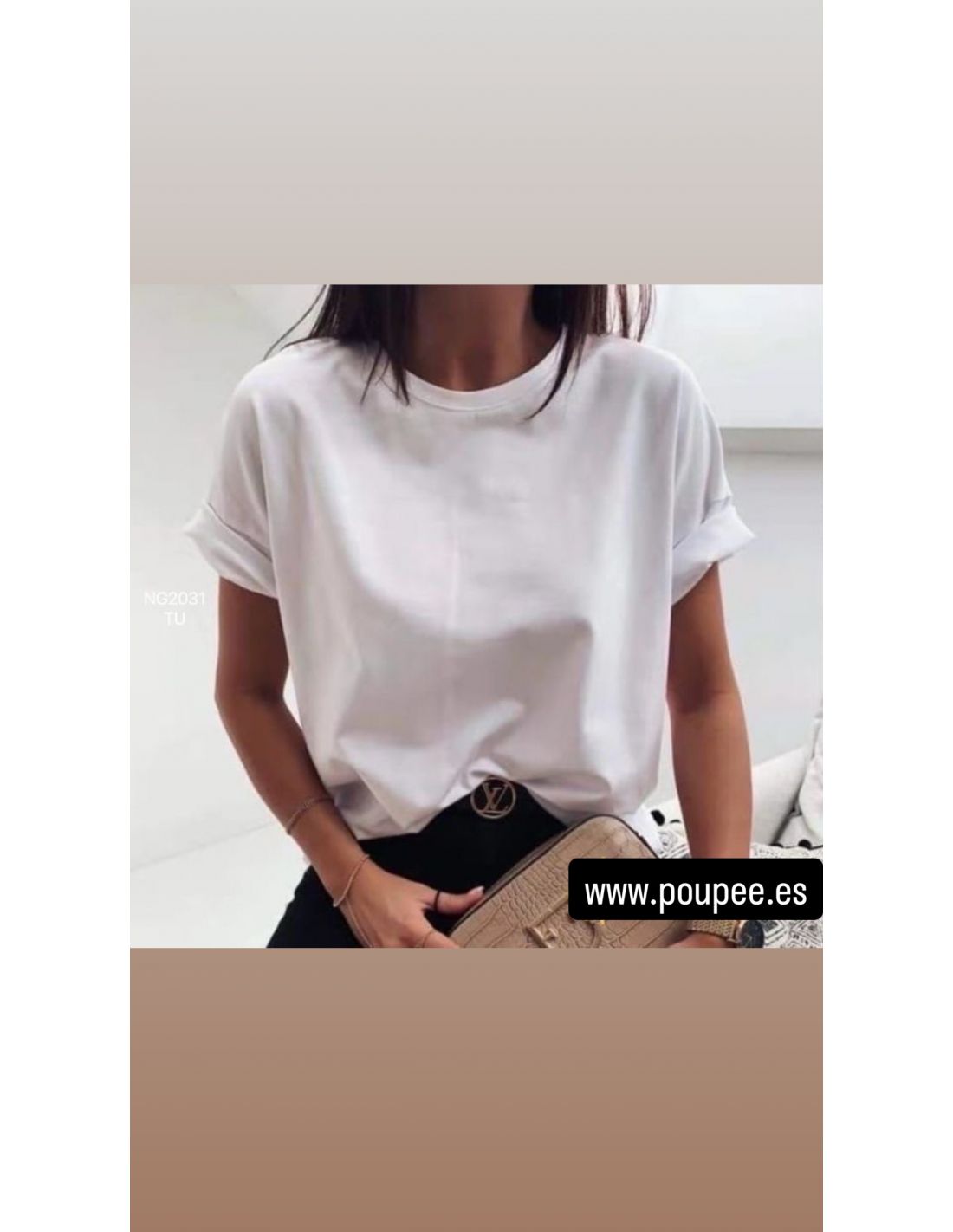 Camiseta de cuello a la caja con hombro oversize. La manga lleva la doble cosida.