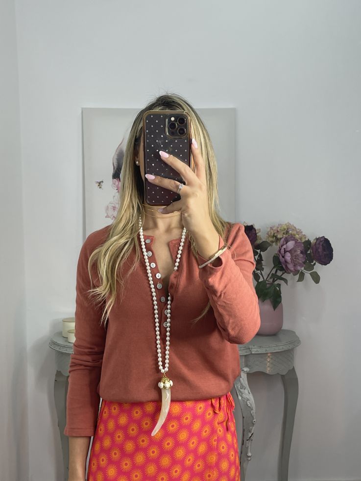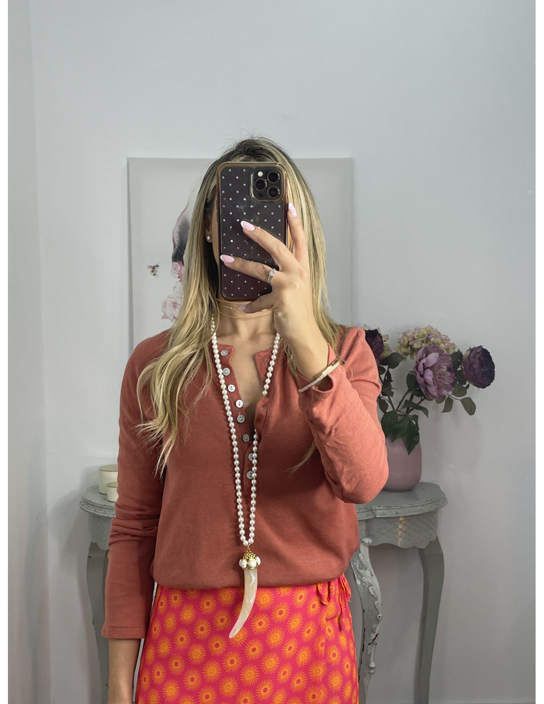 Camiseta de tejido de algodón con botones y cuello a la caja.