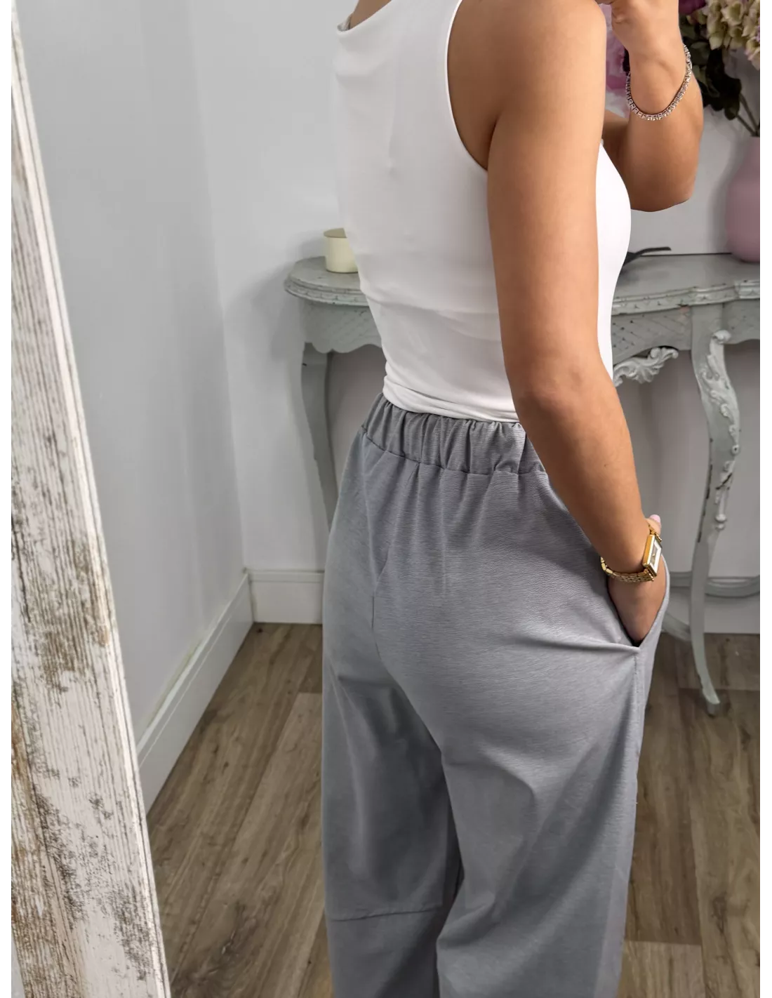 Composición: 80 % poliéster, 20 % elástico