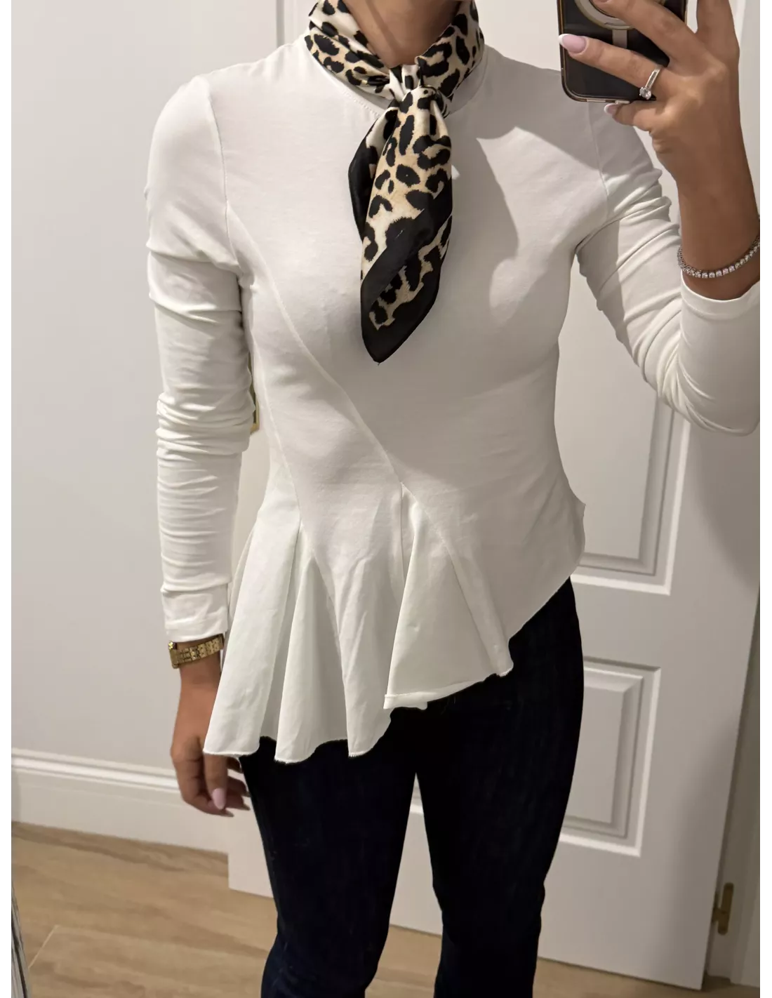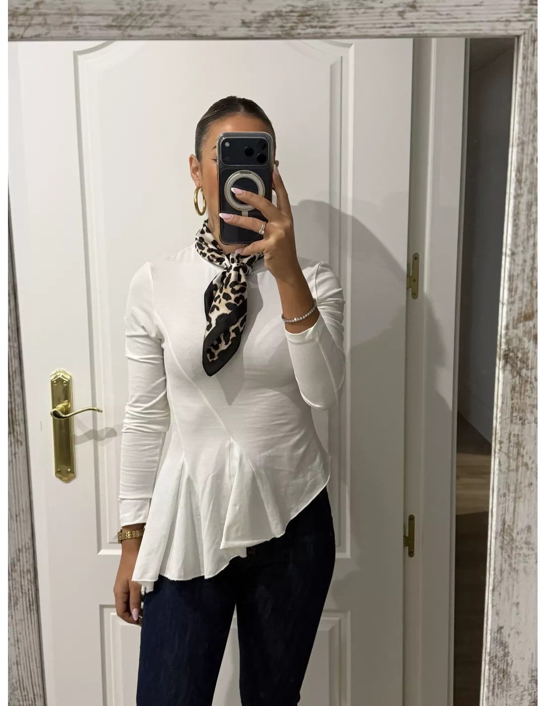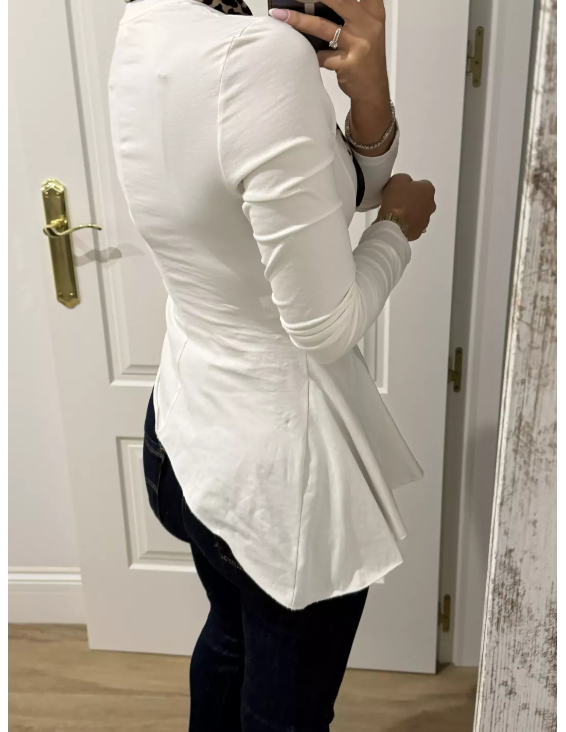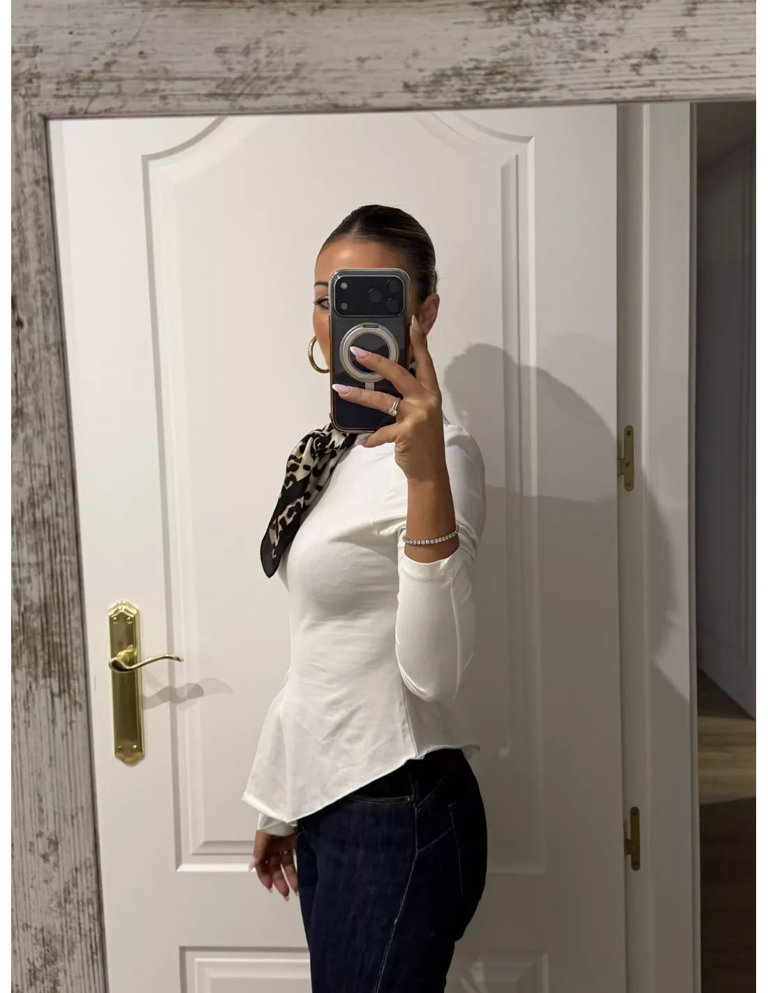 Camiseta de cuello a la caja debajo asimétrico. De corte ajustado.