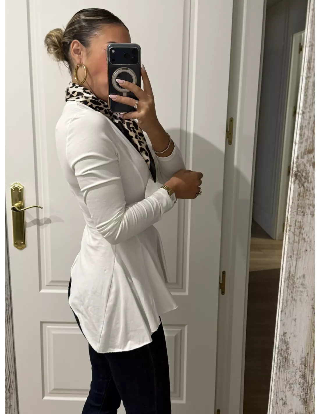 -Talla ML: hombro 39 cm, pecho 41 cm, largo más corto 49 cm largo hasta el pico 72 cm