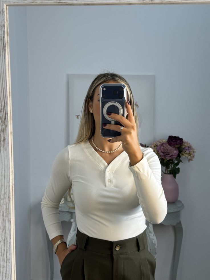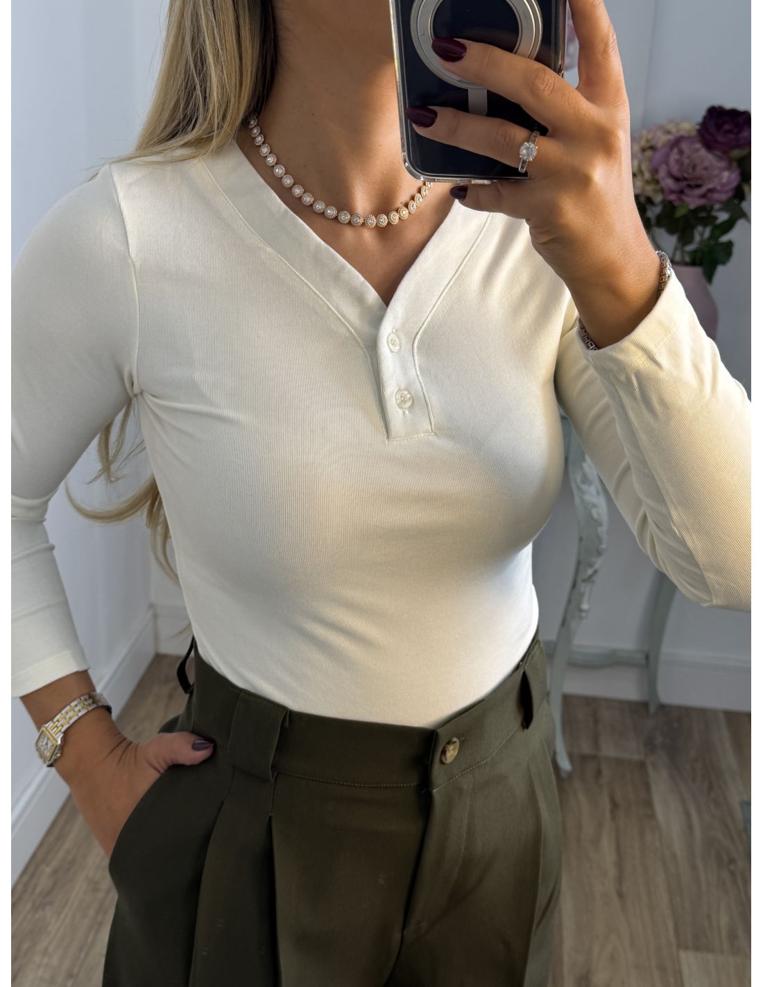 Camiseta de corte ajustado con botones en la zona del pecho.