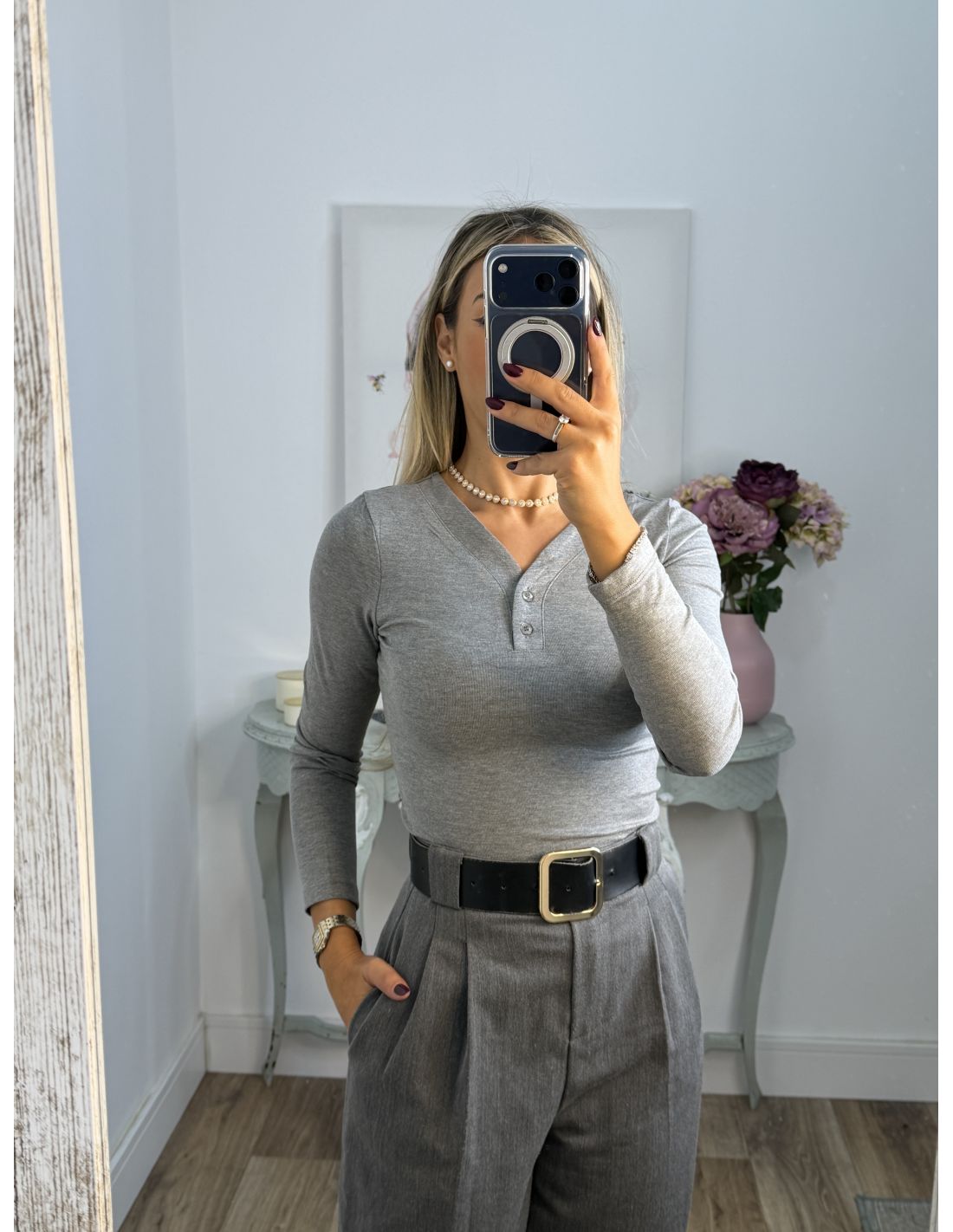 Camiseta de corte ajustado con botones en la zona del pecho.
