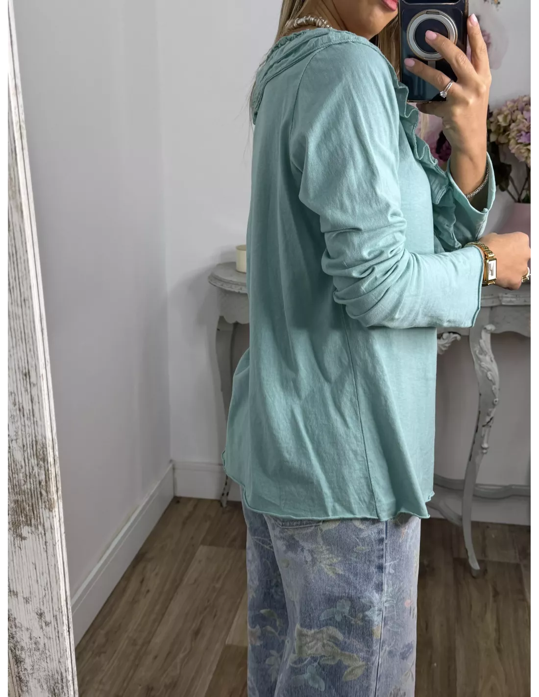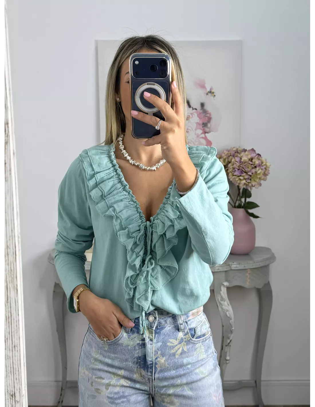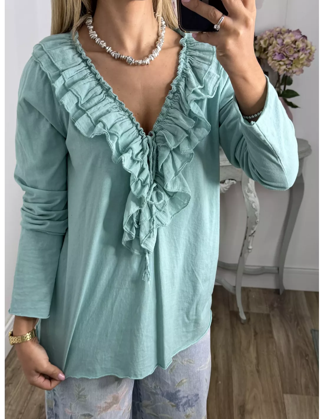Camiseta con volantes en la zona del pecho, de Corte suelto.