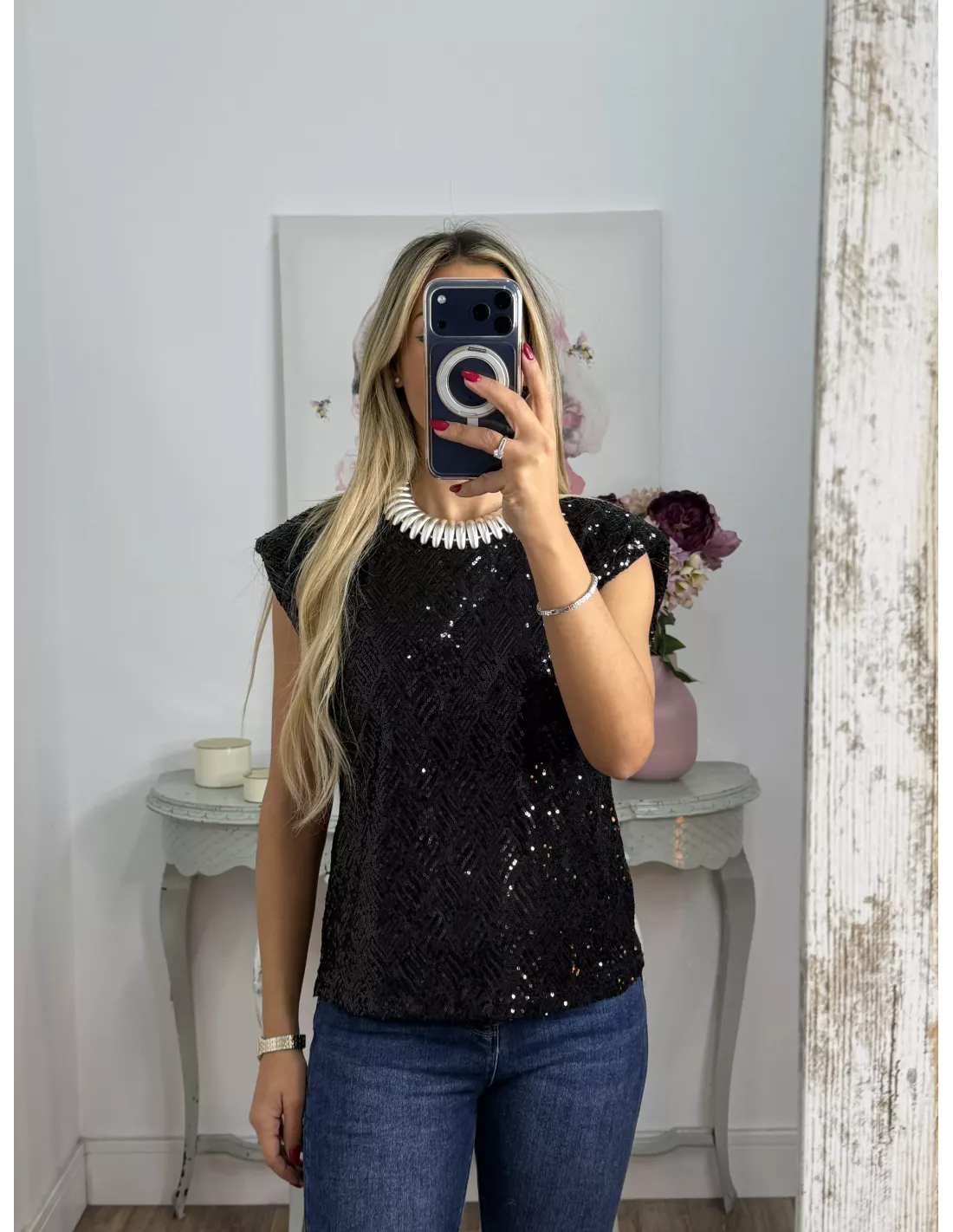 Camiseta de hombres de lentejuelas. Va forrada, no pica, la lentejuela no está en contacto con la piel.