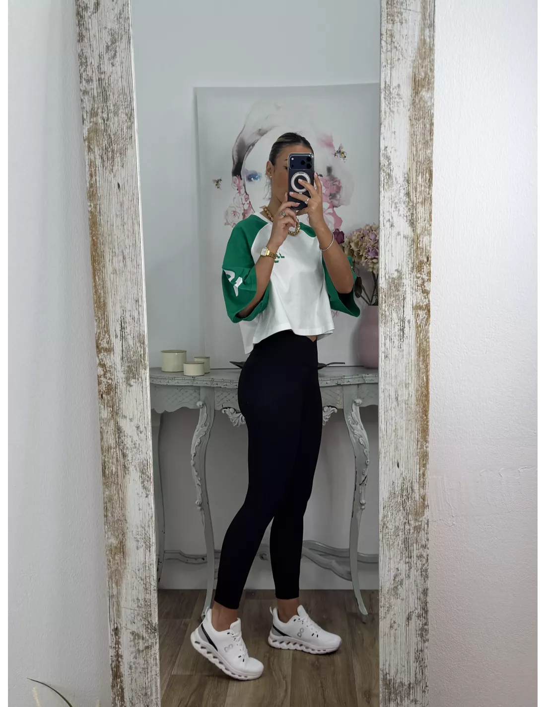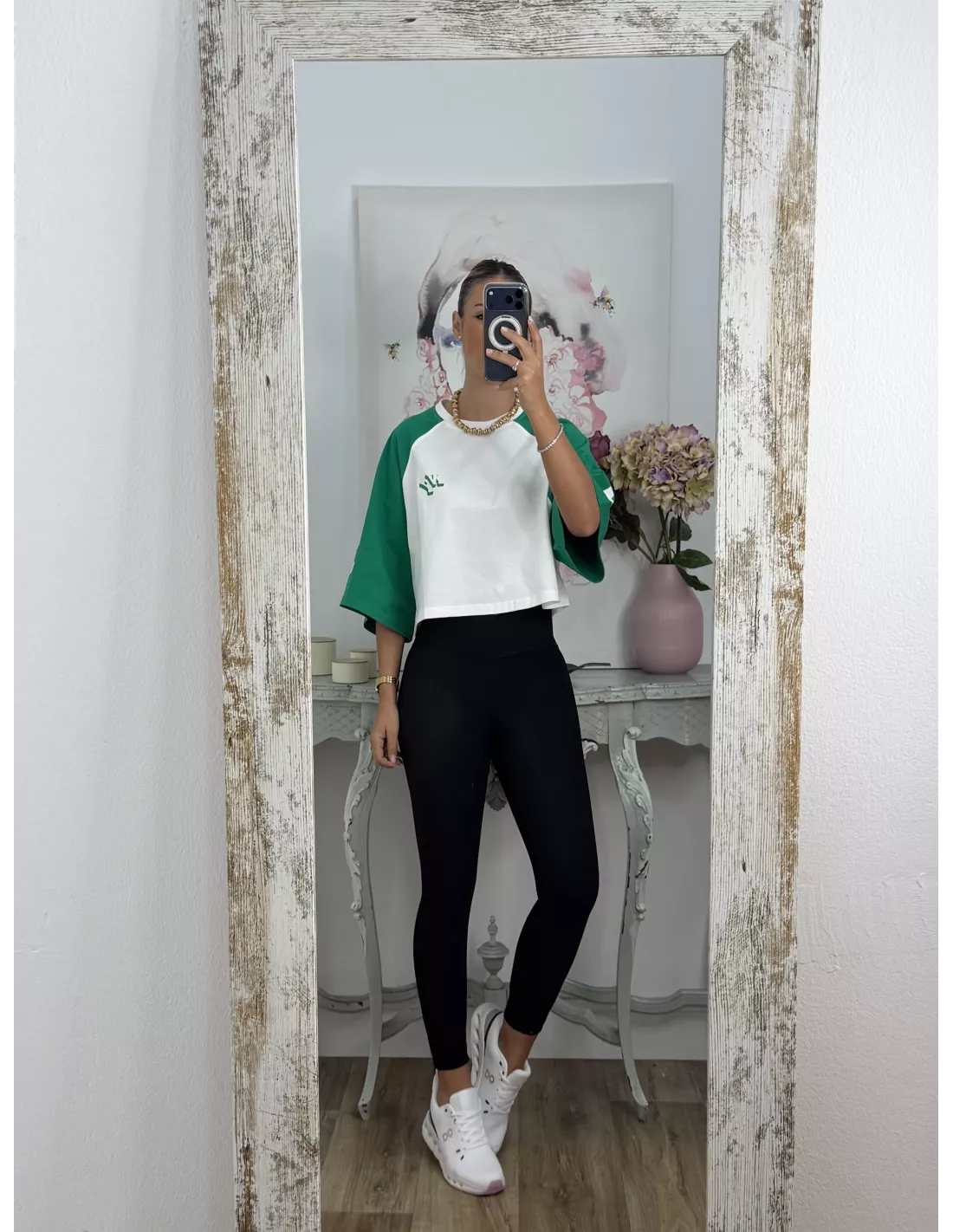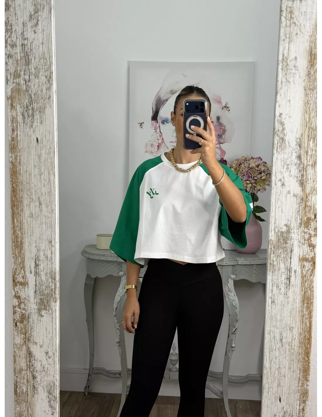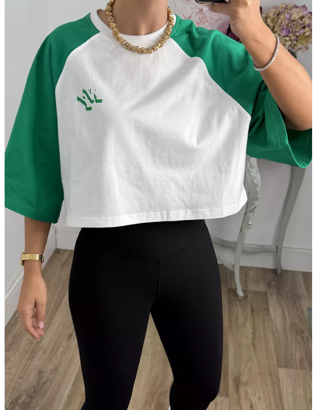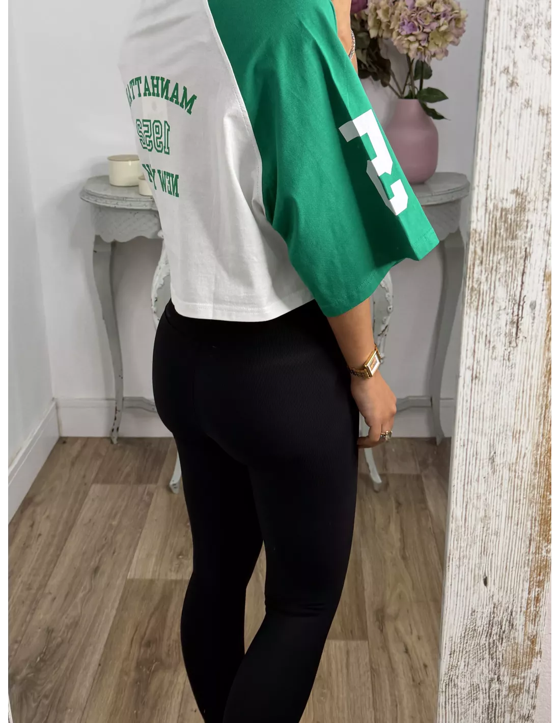 Camiseta Manhattan blanca y verde