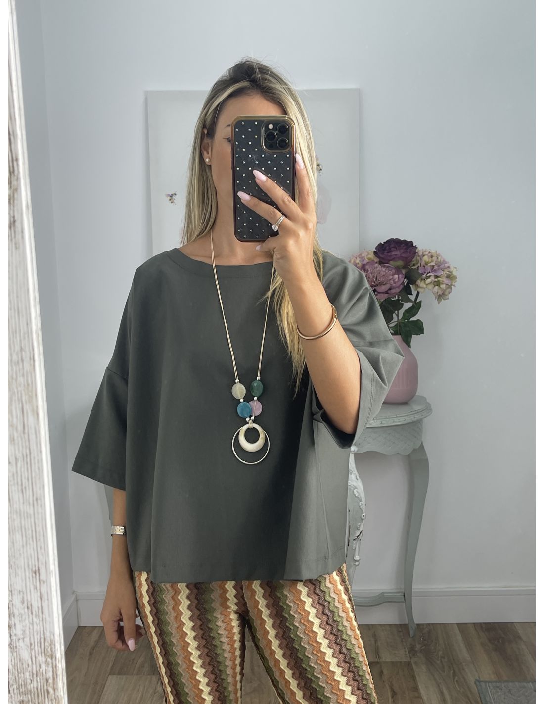 Camiseta de manga corta de cuello a la caja de corte recto y oversize.