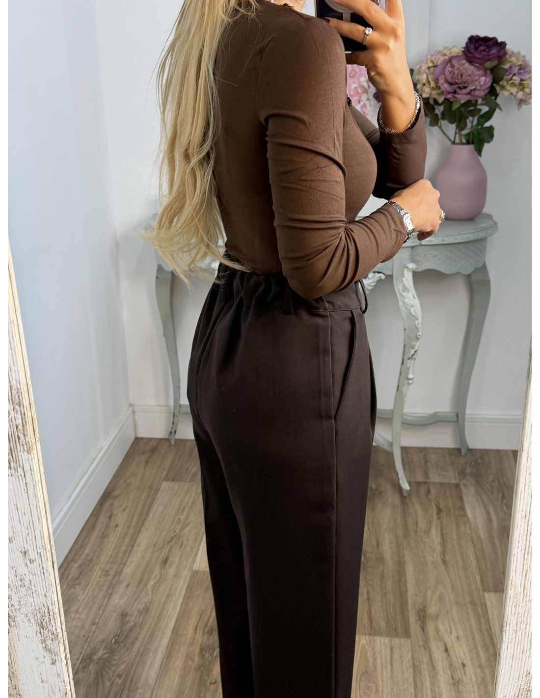 La modelo lleva puesta la talla SM, ella utiliza de forma habitual la talla xs-s y mide 1,60cm