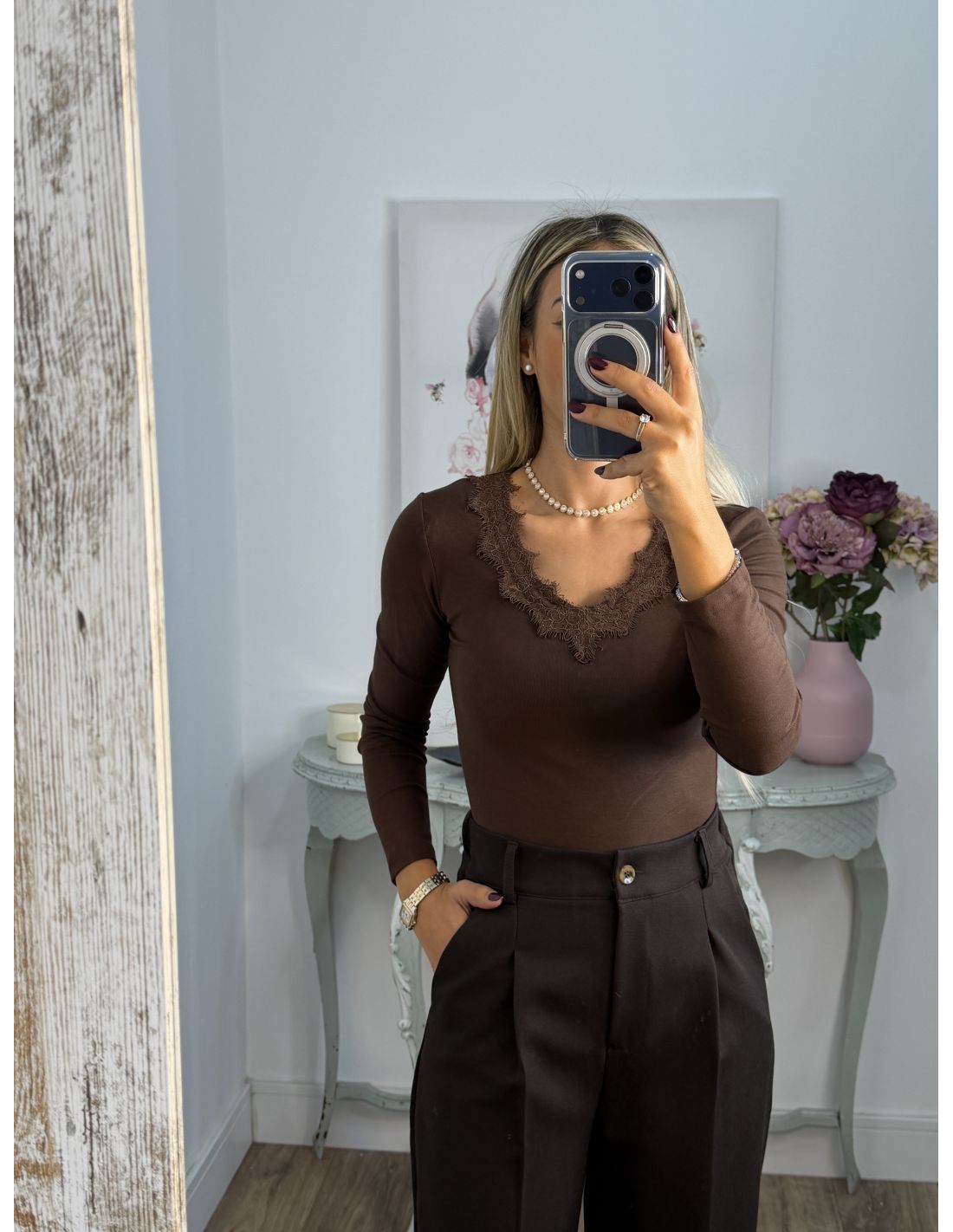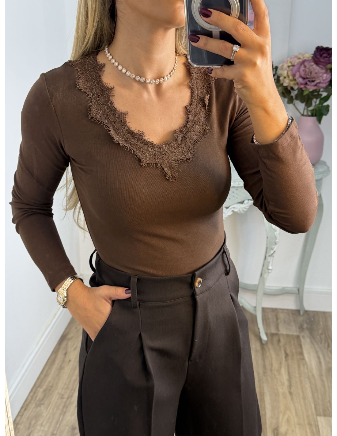 Camiseta Puntilla chocolate