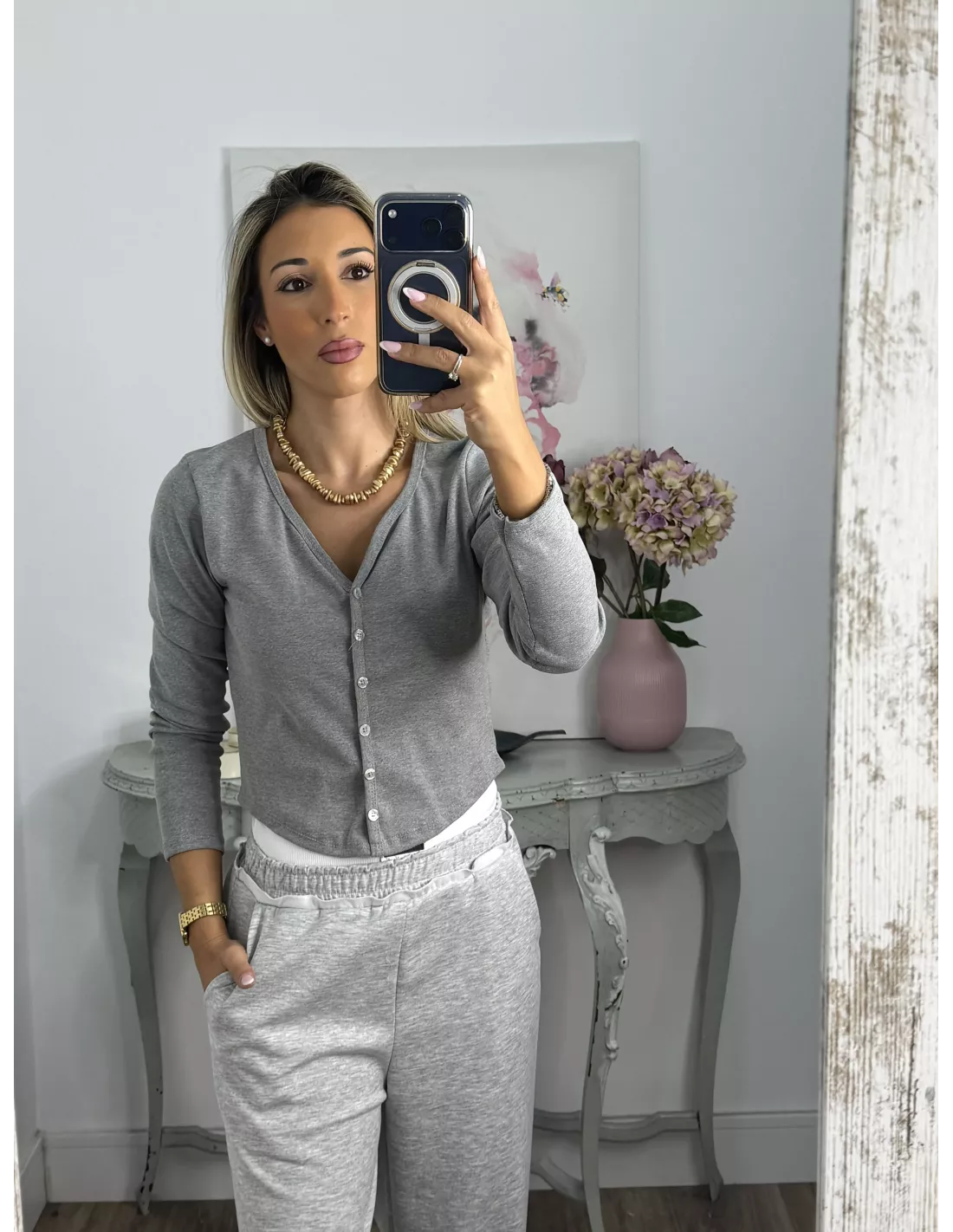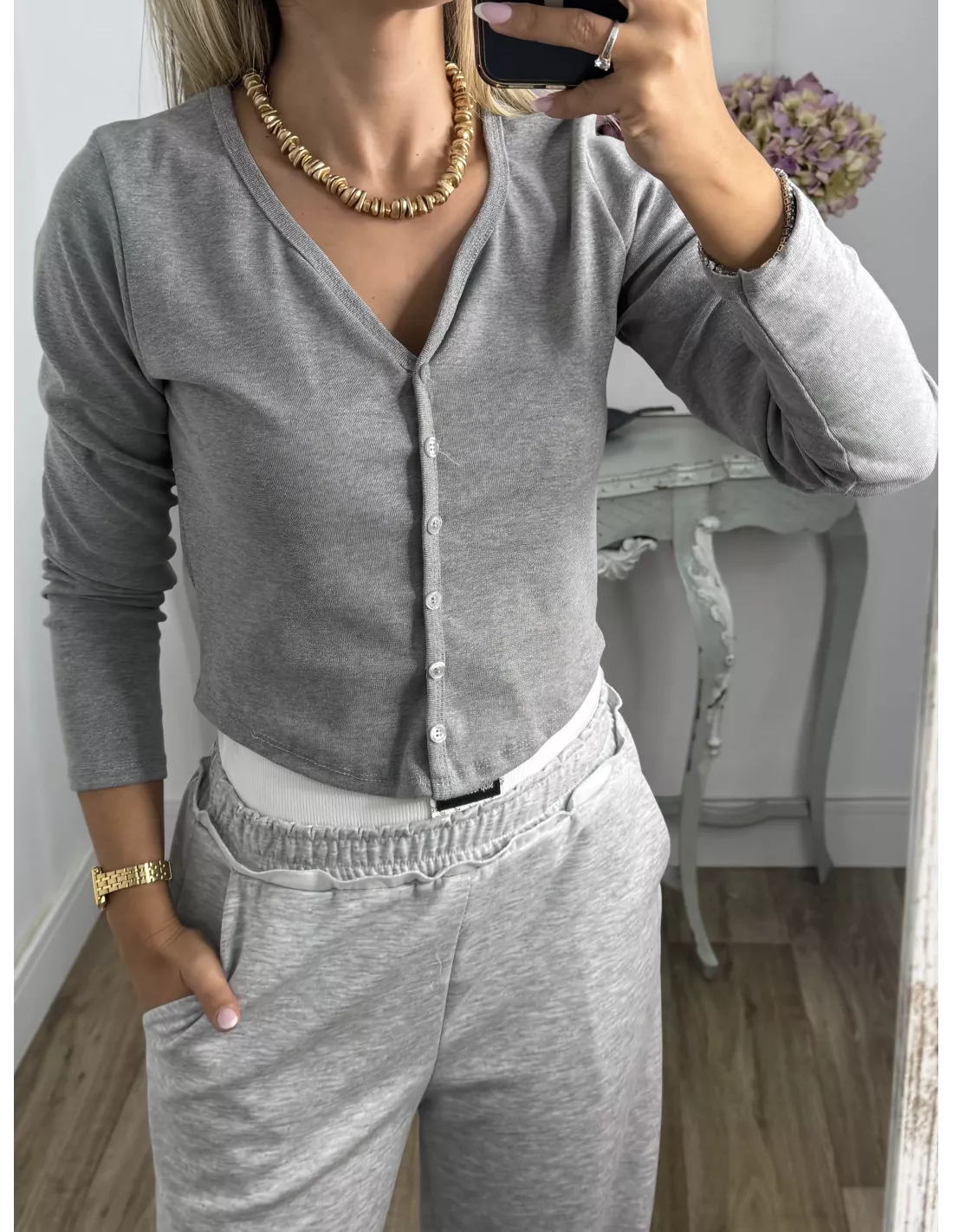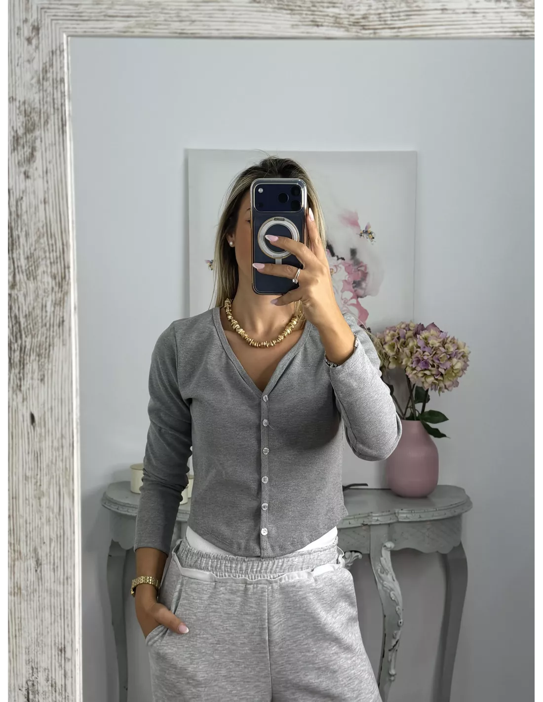 Camiseta Valeris botones gris