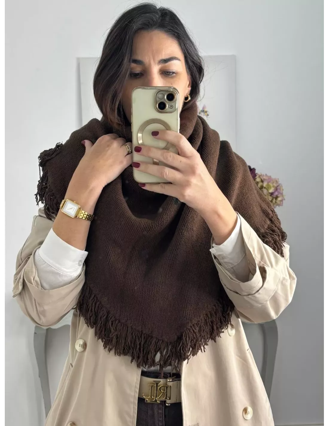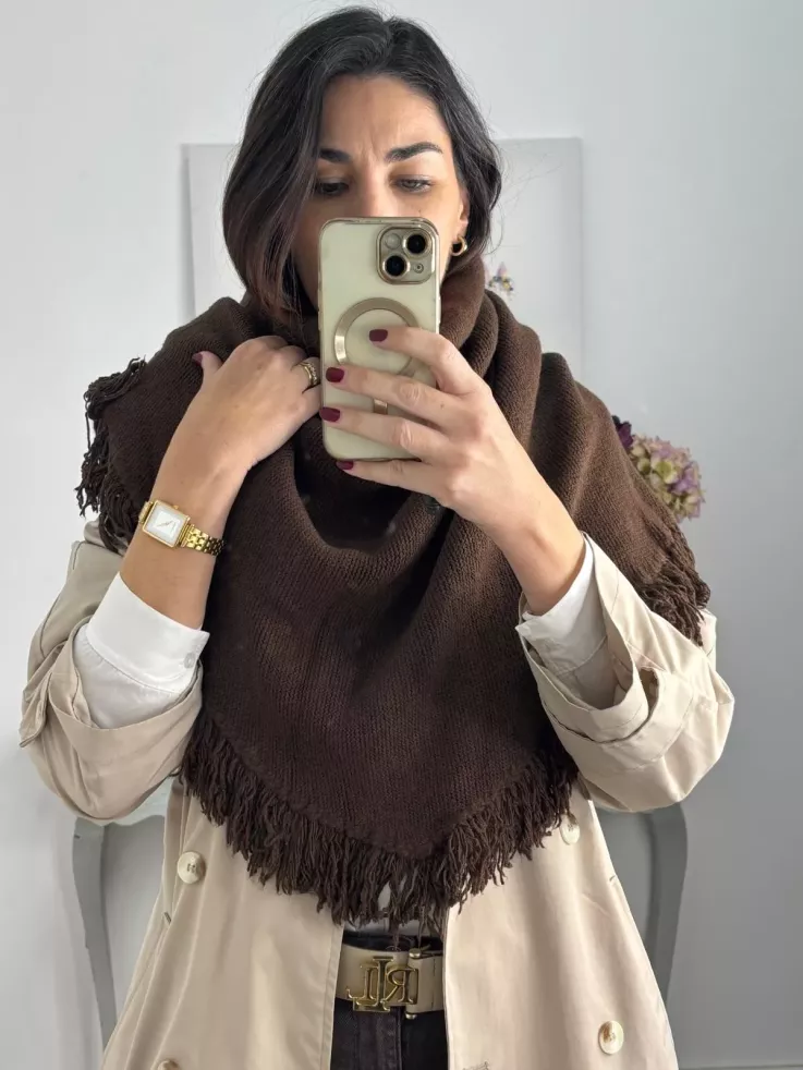 Medidas: largo incluyendo los flecos 82cm, ancho 178cm hasta el pico.