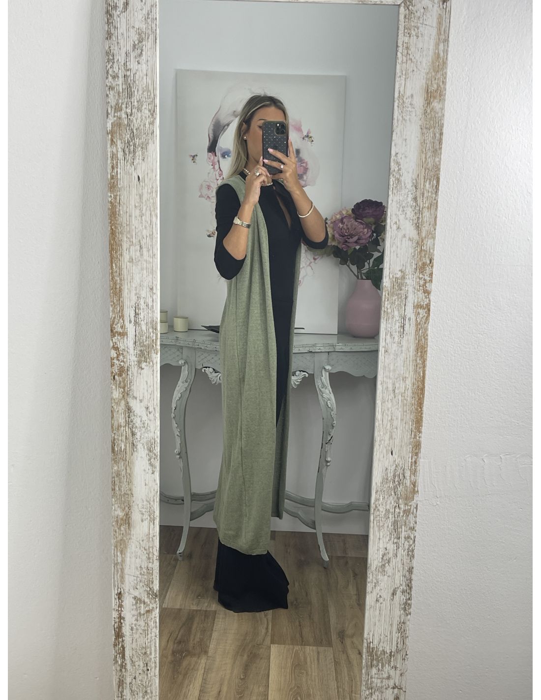 Medidas: hombro 43cm, sisa 43cm, largo 125cm