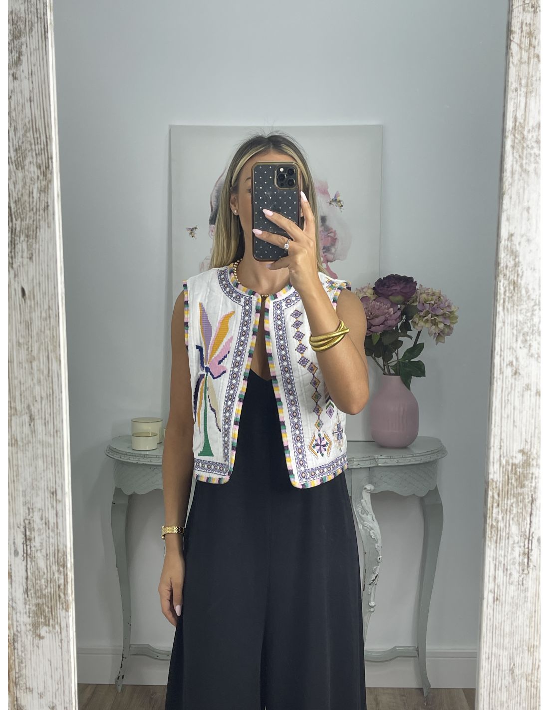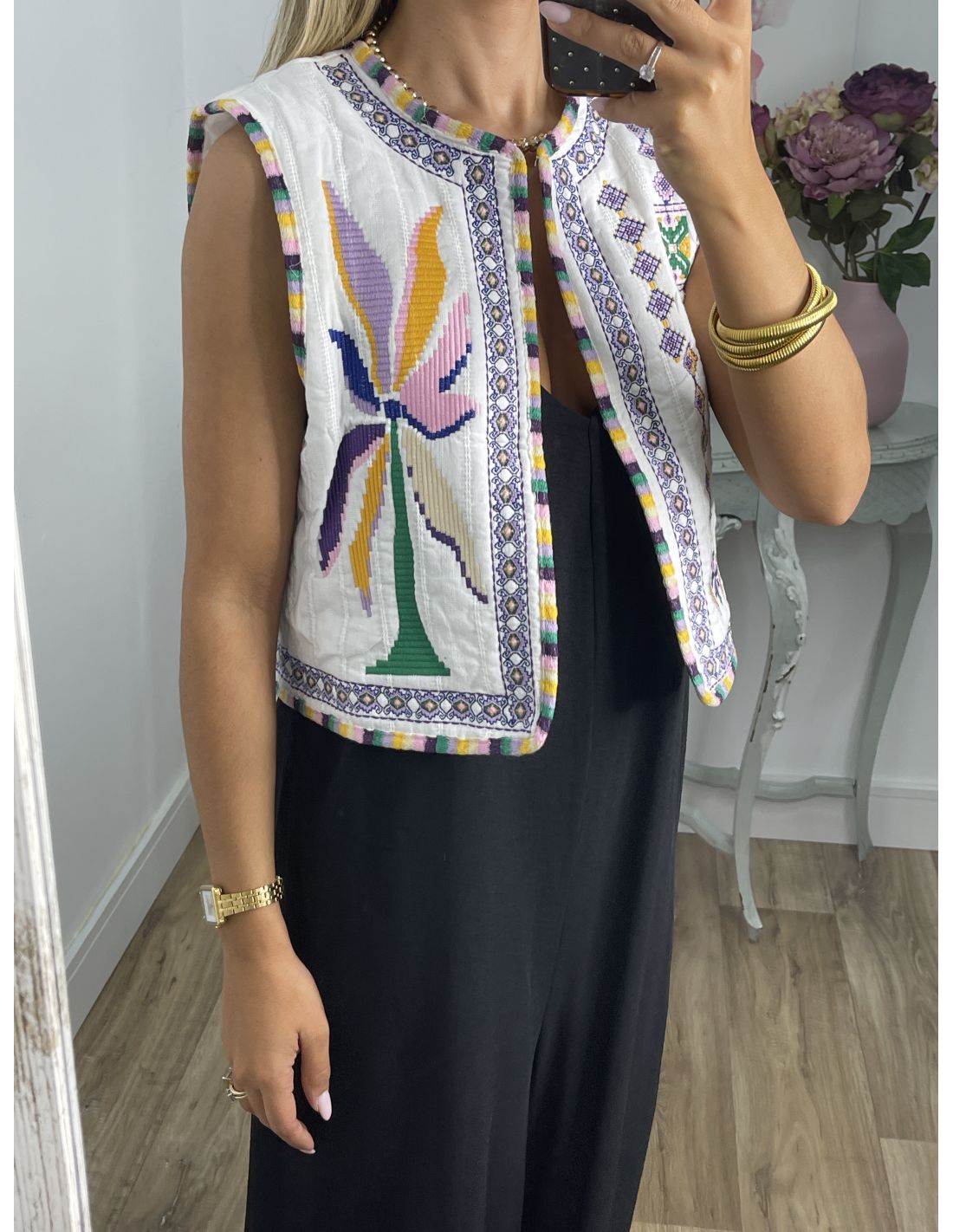 Chaleco Grecia blanco con bordados