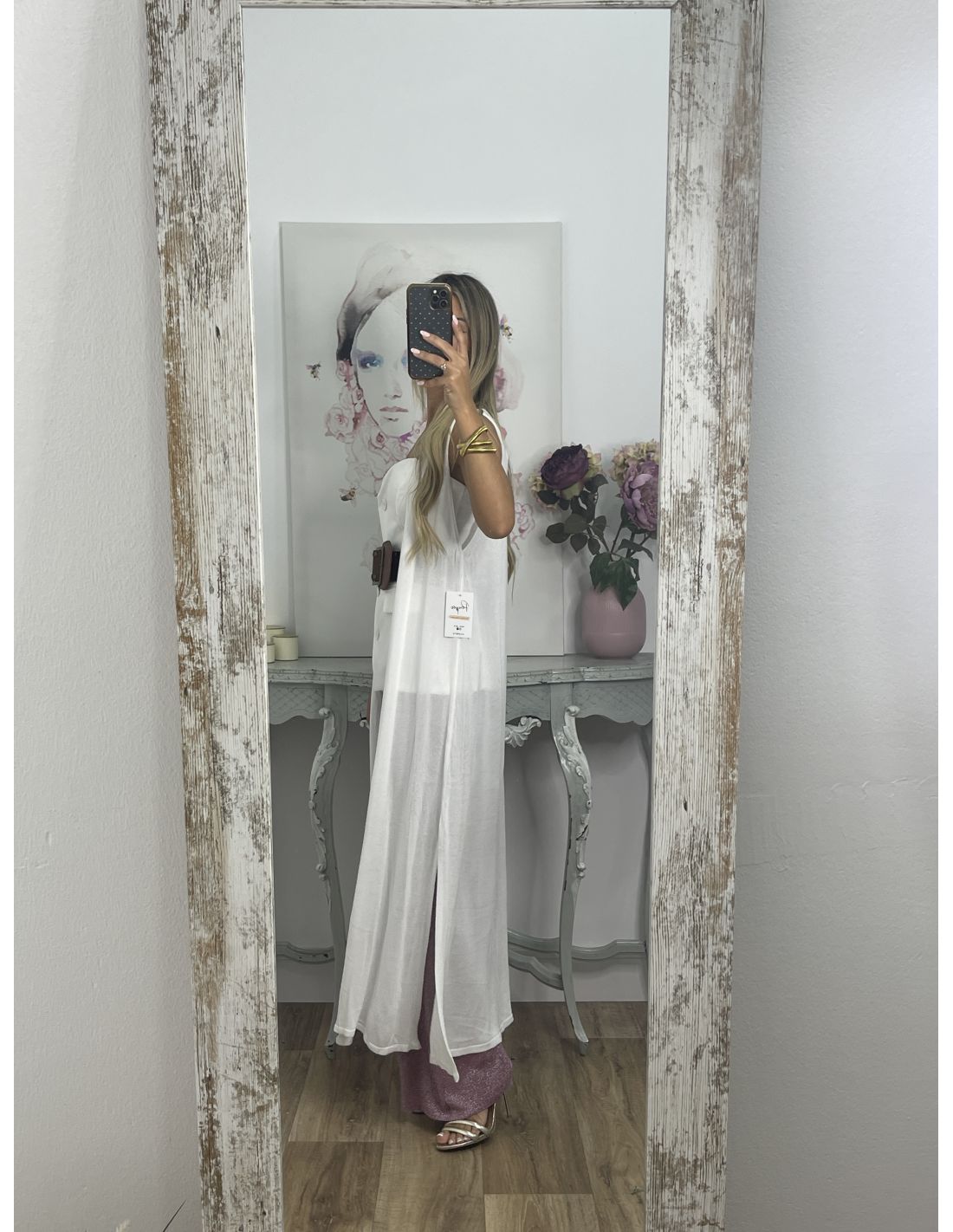 Medidas: hombro 35cm, sisa 52cm, largo 120cm
