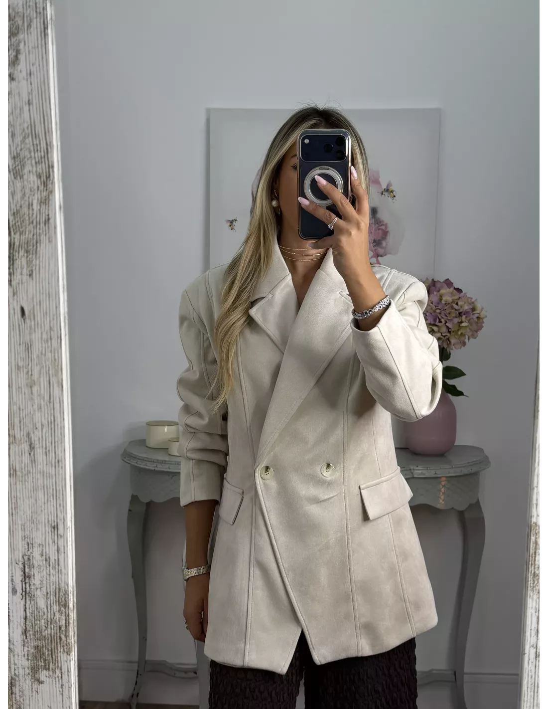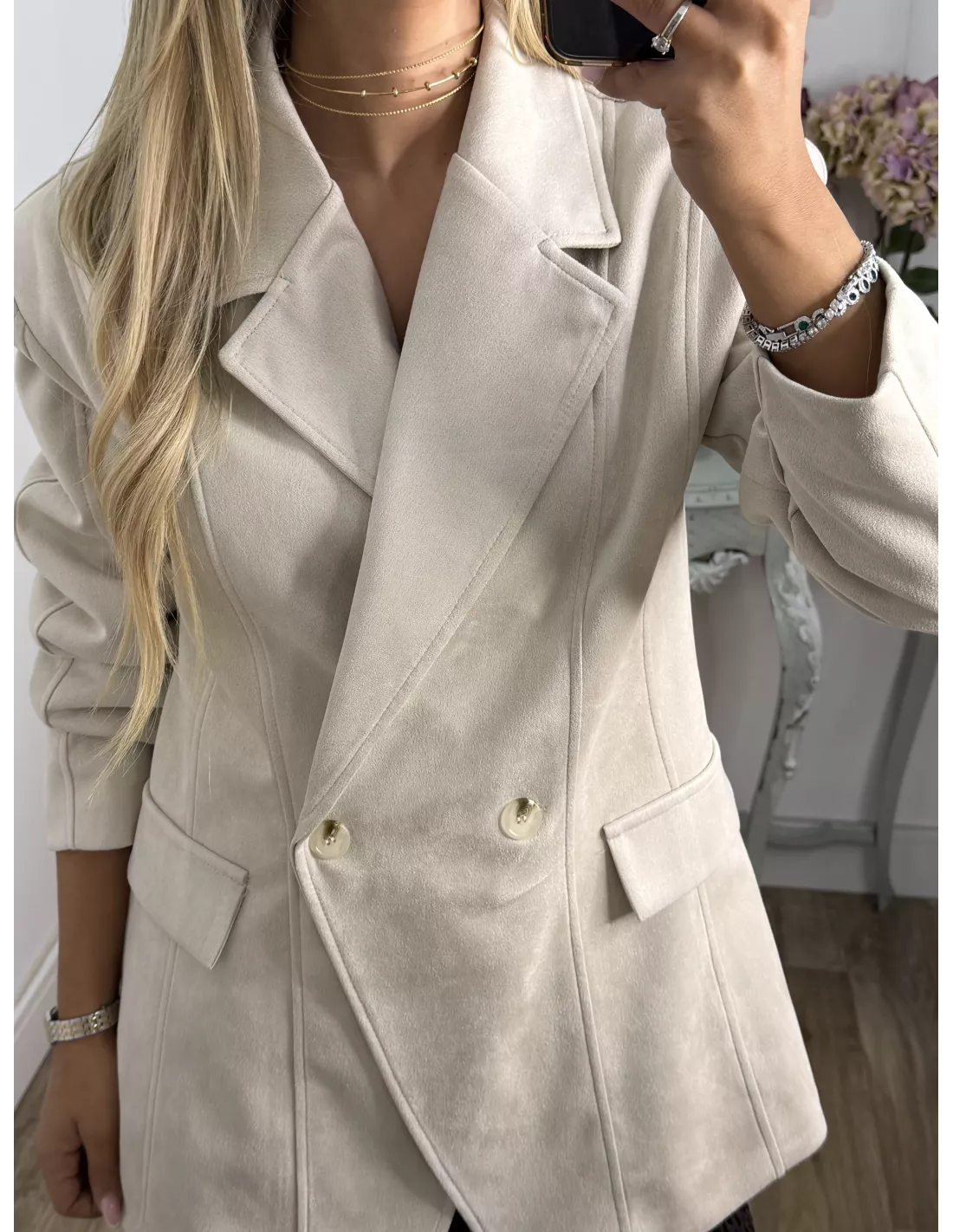 Chaqueta Adri antelina hueso