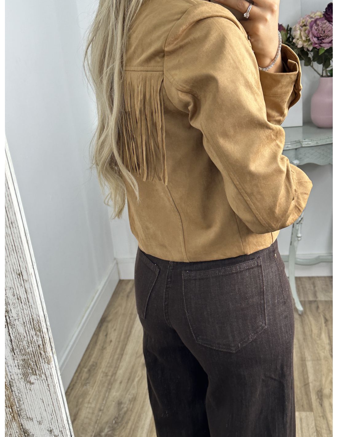 Chaqueta antelina flecos y tachas