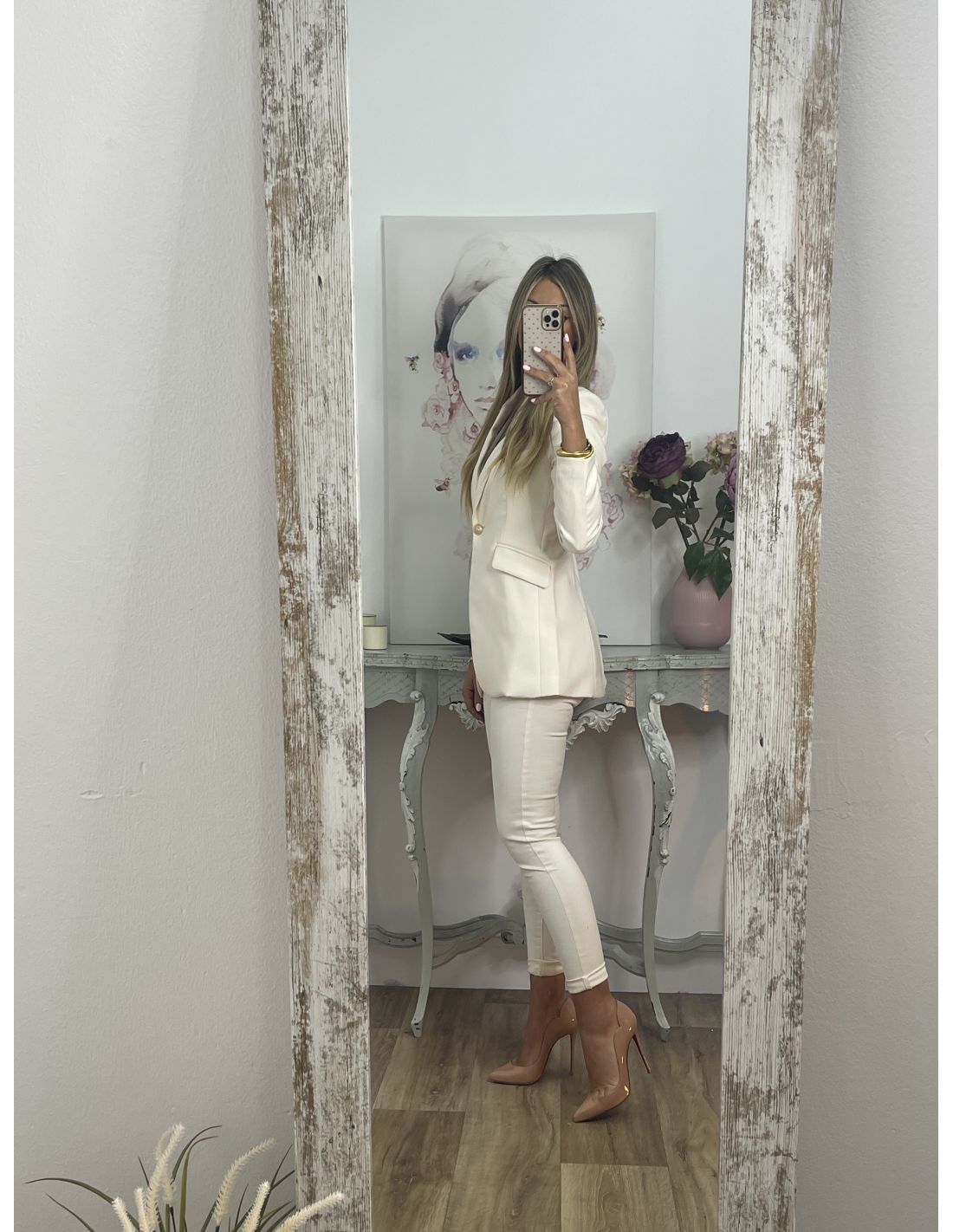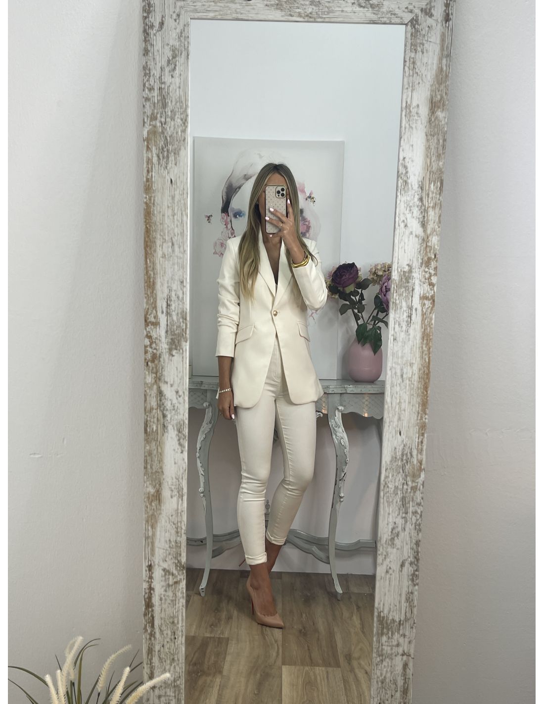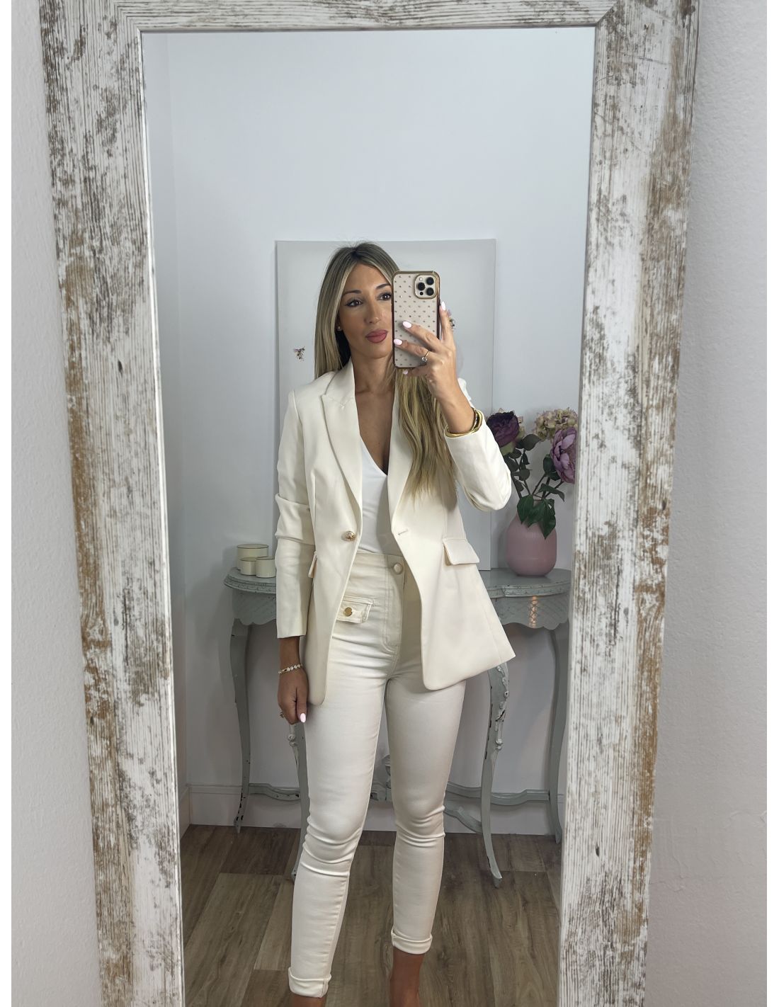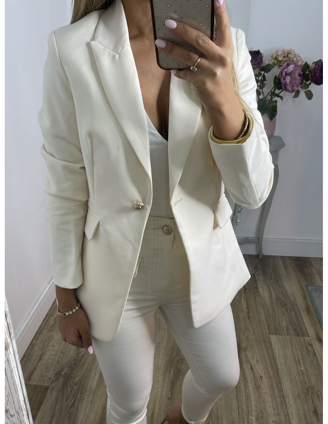 Chaqueta entallada hueso
