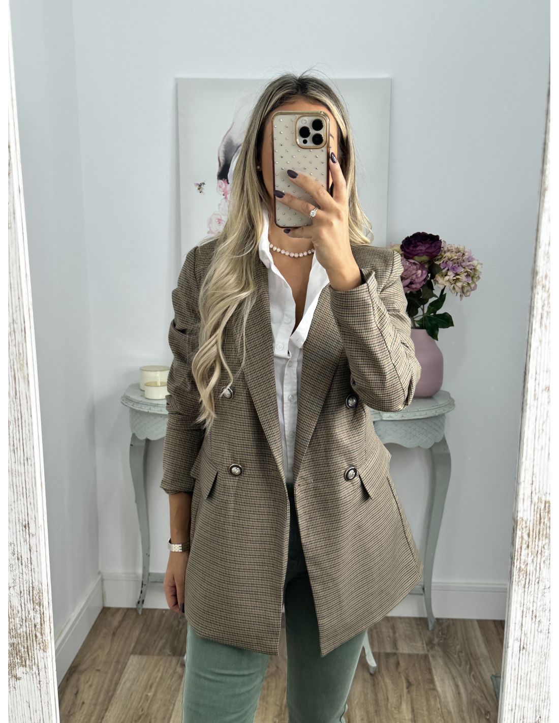 Chaqueta de corte cruzado, con hombreras y va forrada. Sienta muy bien. Los botones son dorados.