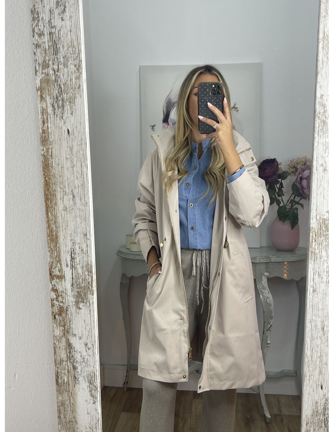 Chaqueta tipo parka liso beige