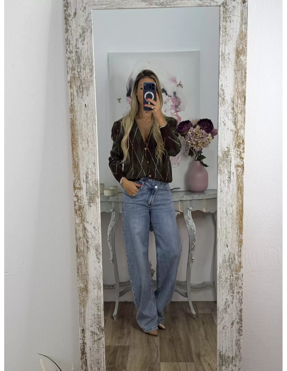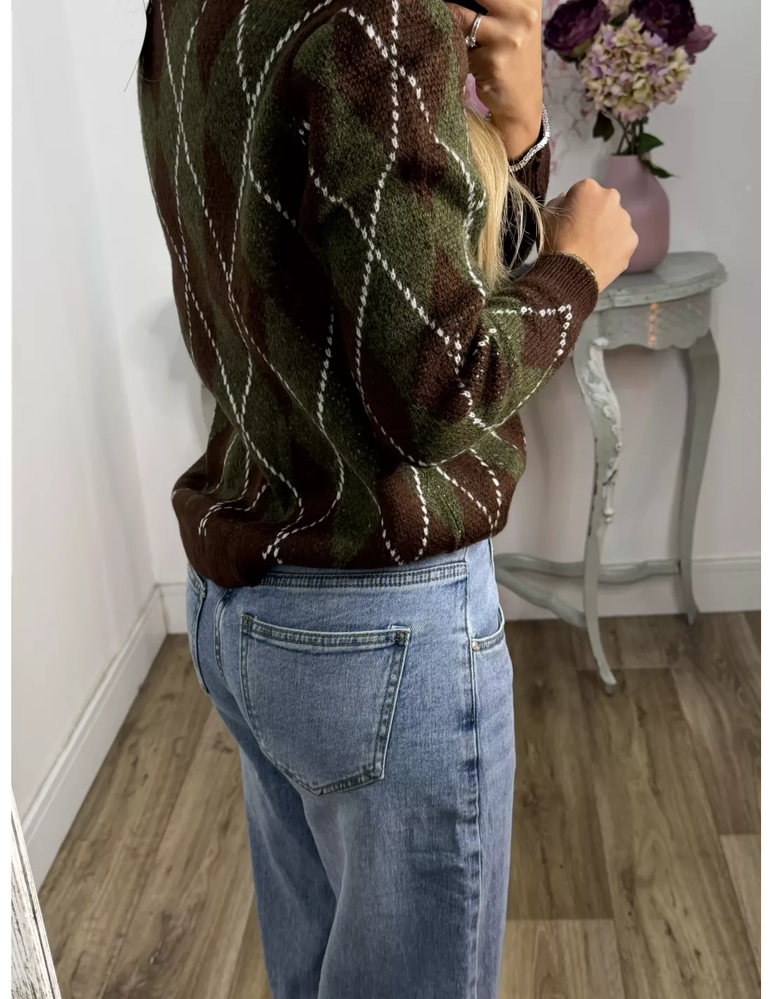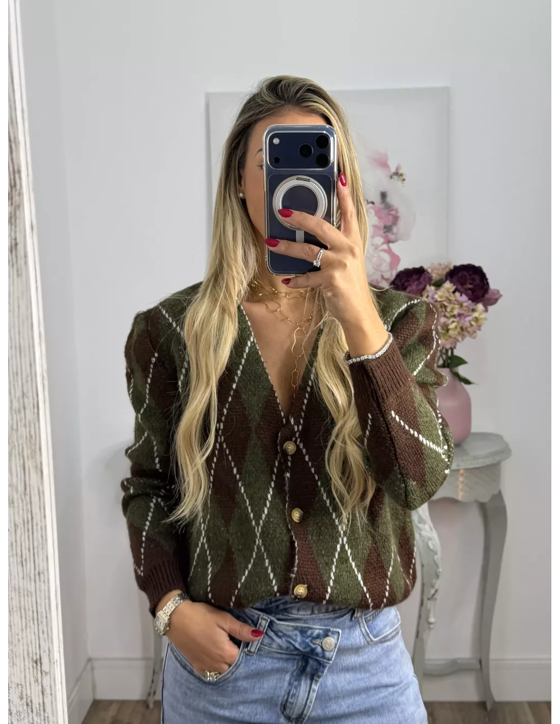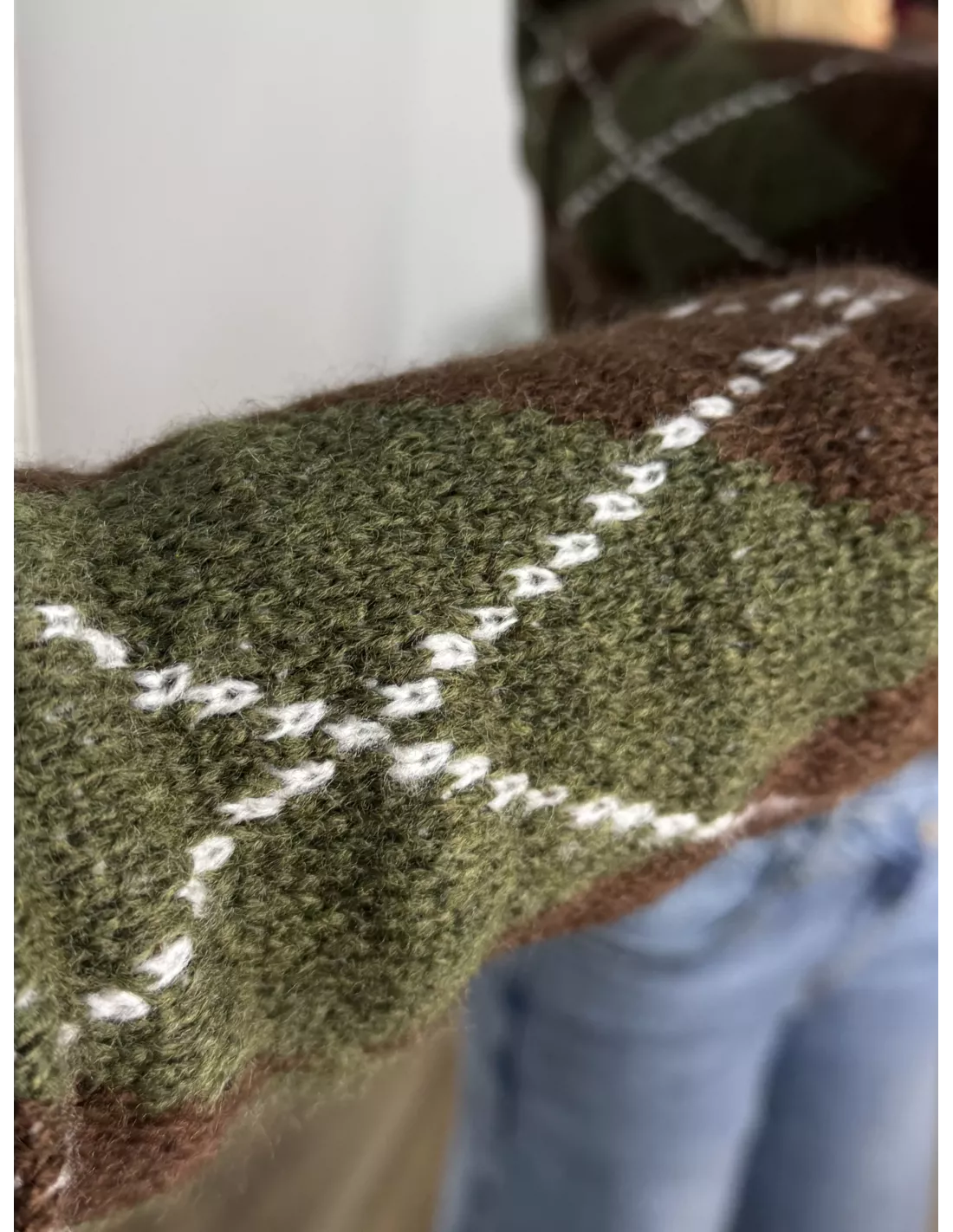 Chaqueta de punto abotonada con estampado de rombo. De tacto suaves no pica nada.