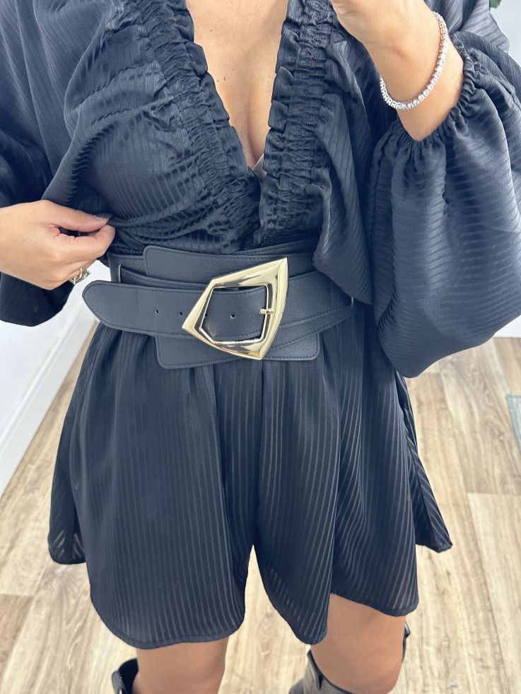 Cinturón ancho trenzado de tejido tipo piel, (no es de piel). La parte de atrás es elástica y se adapta muy bien.