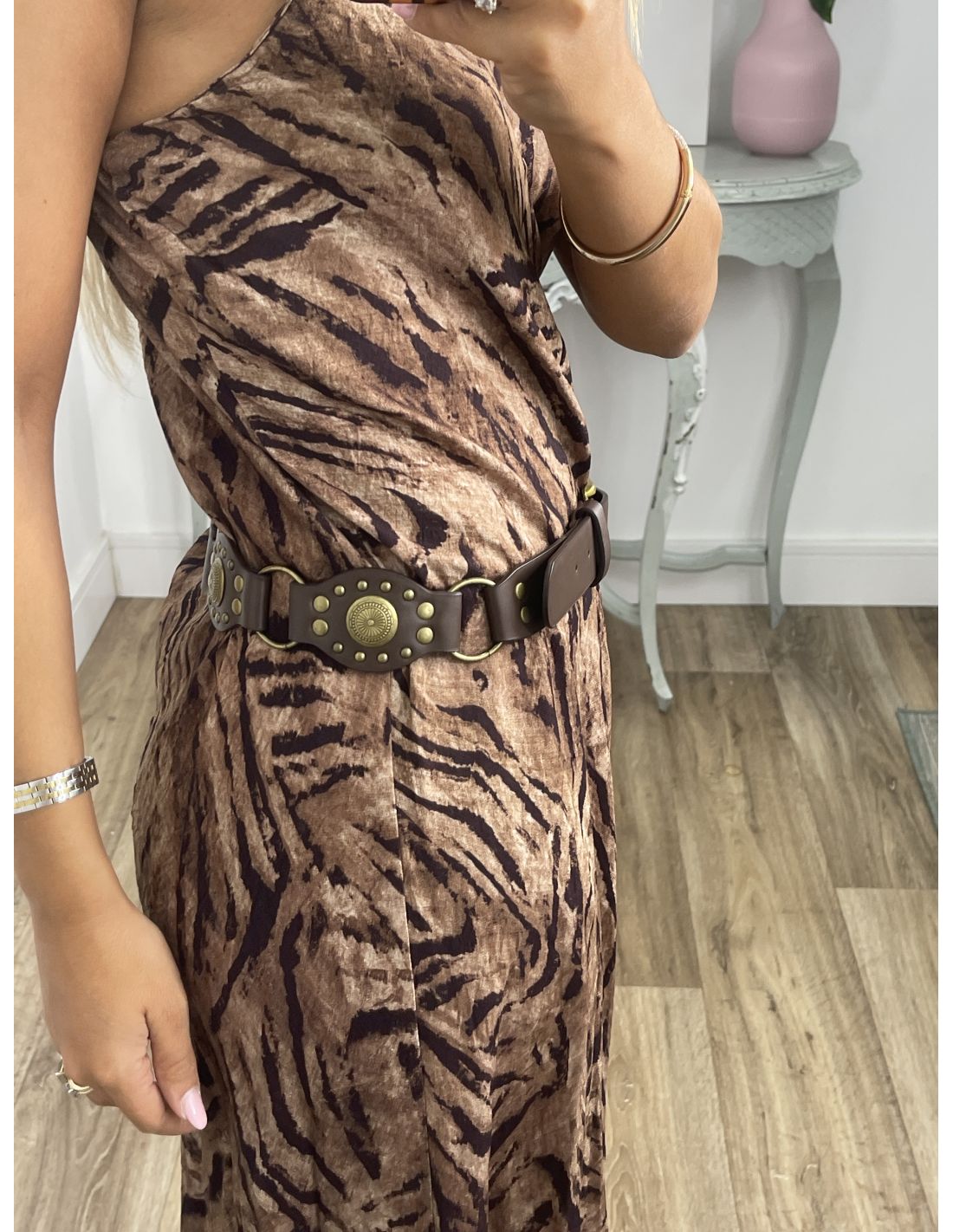 Cinturón, efecto piel, no es de piel, con tachuelas doradas.