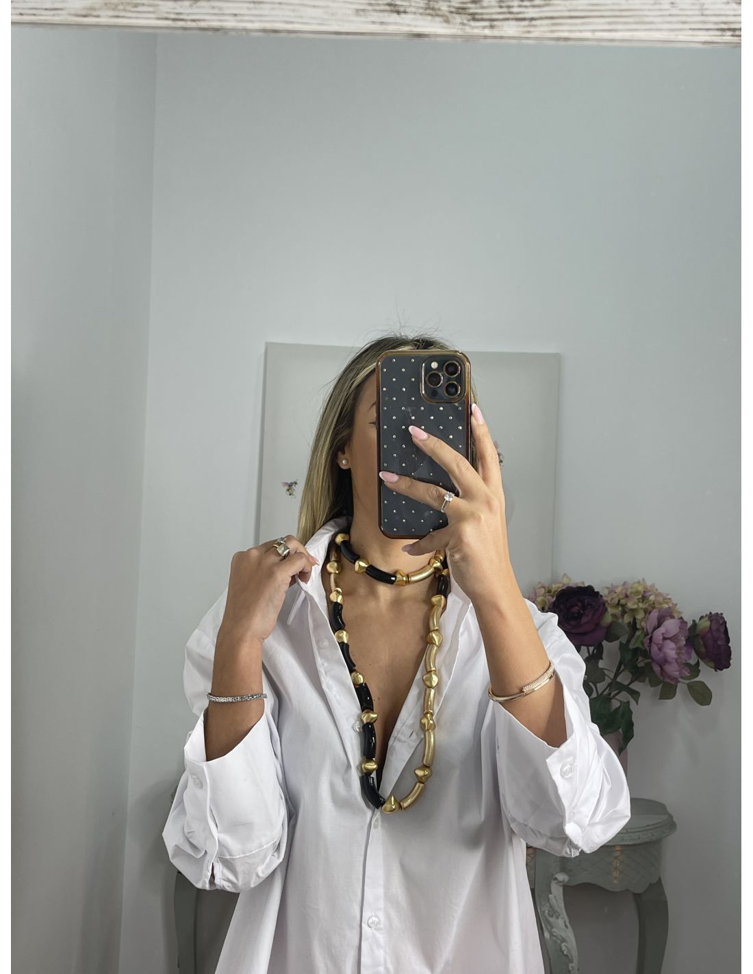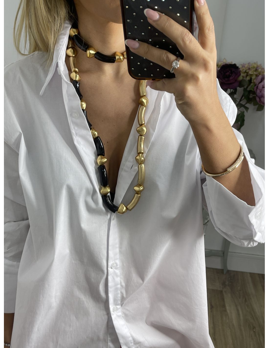 Colgante negro y dorado