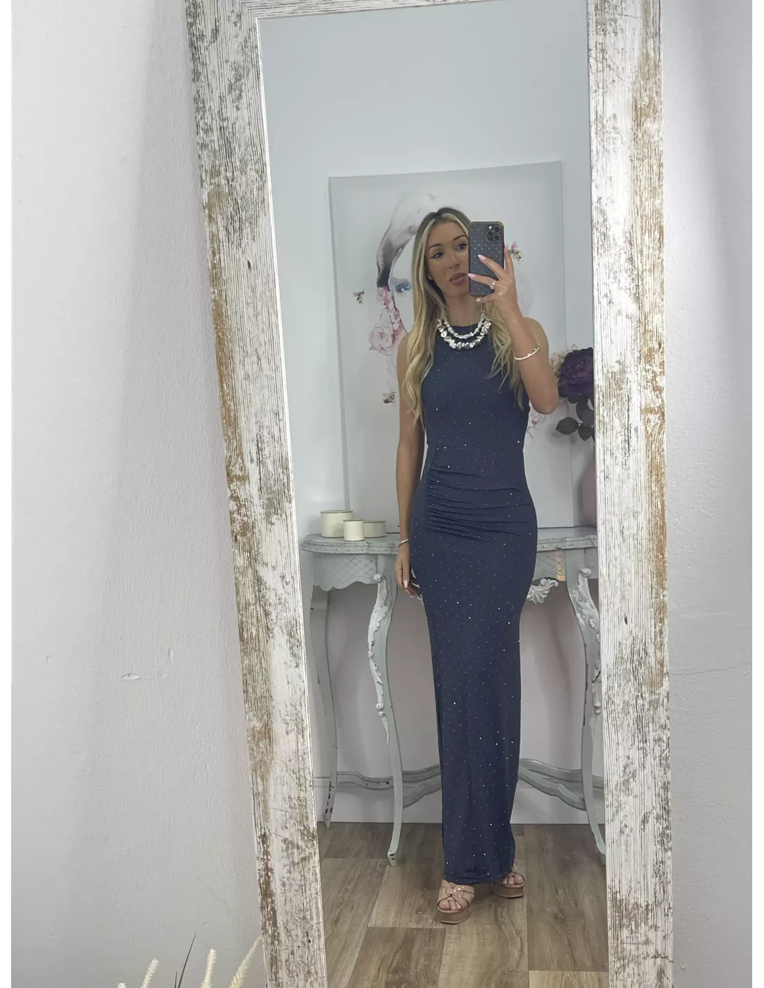 -Falda:Cintura 36 cm, cadera 43 cm, largo 98 cm