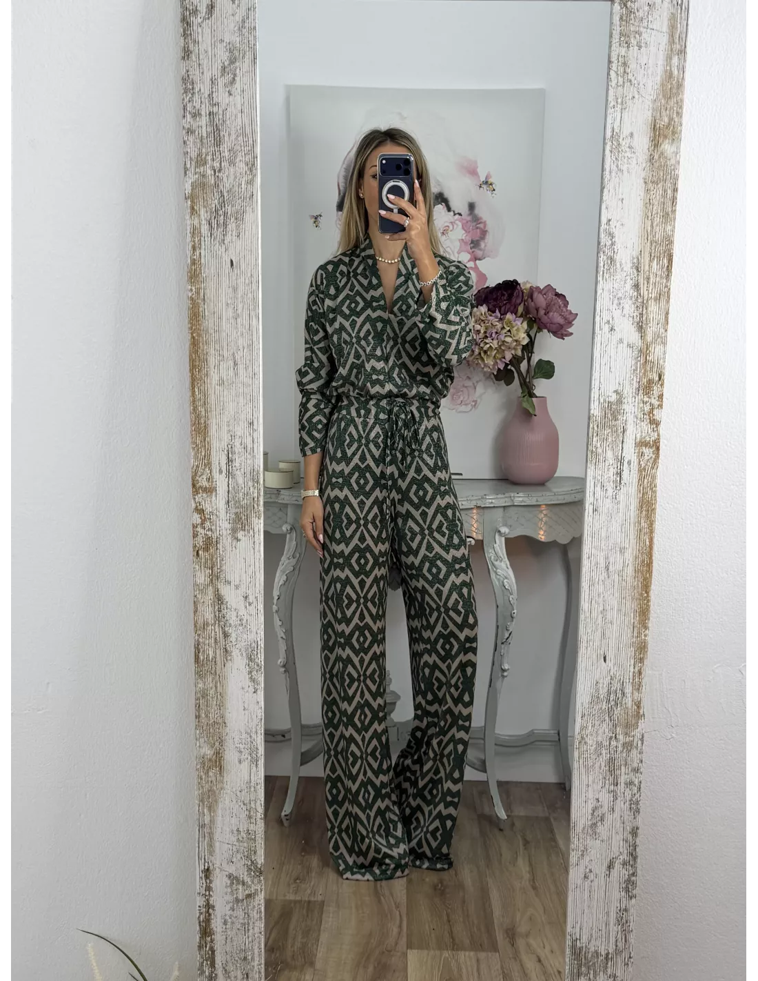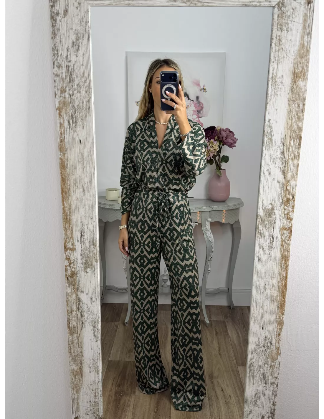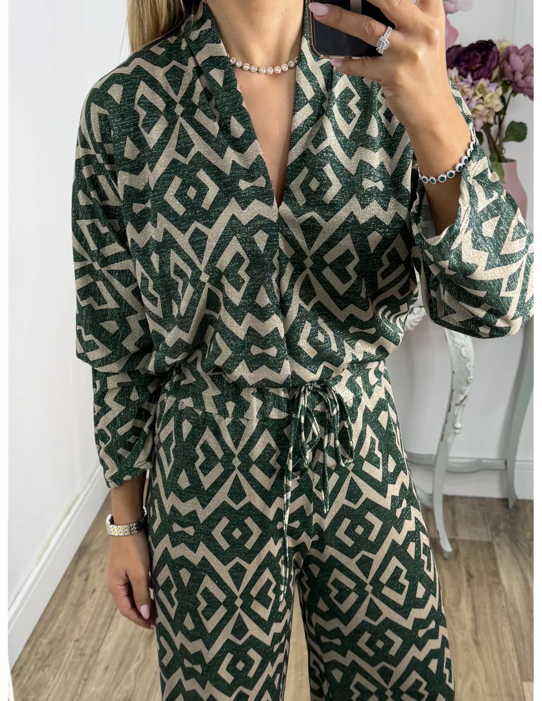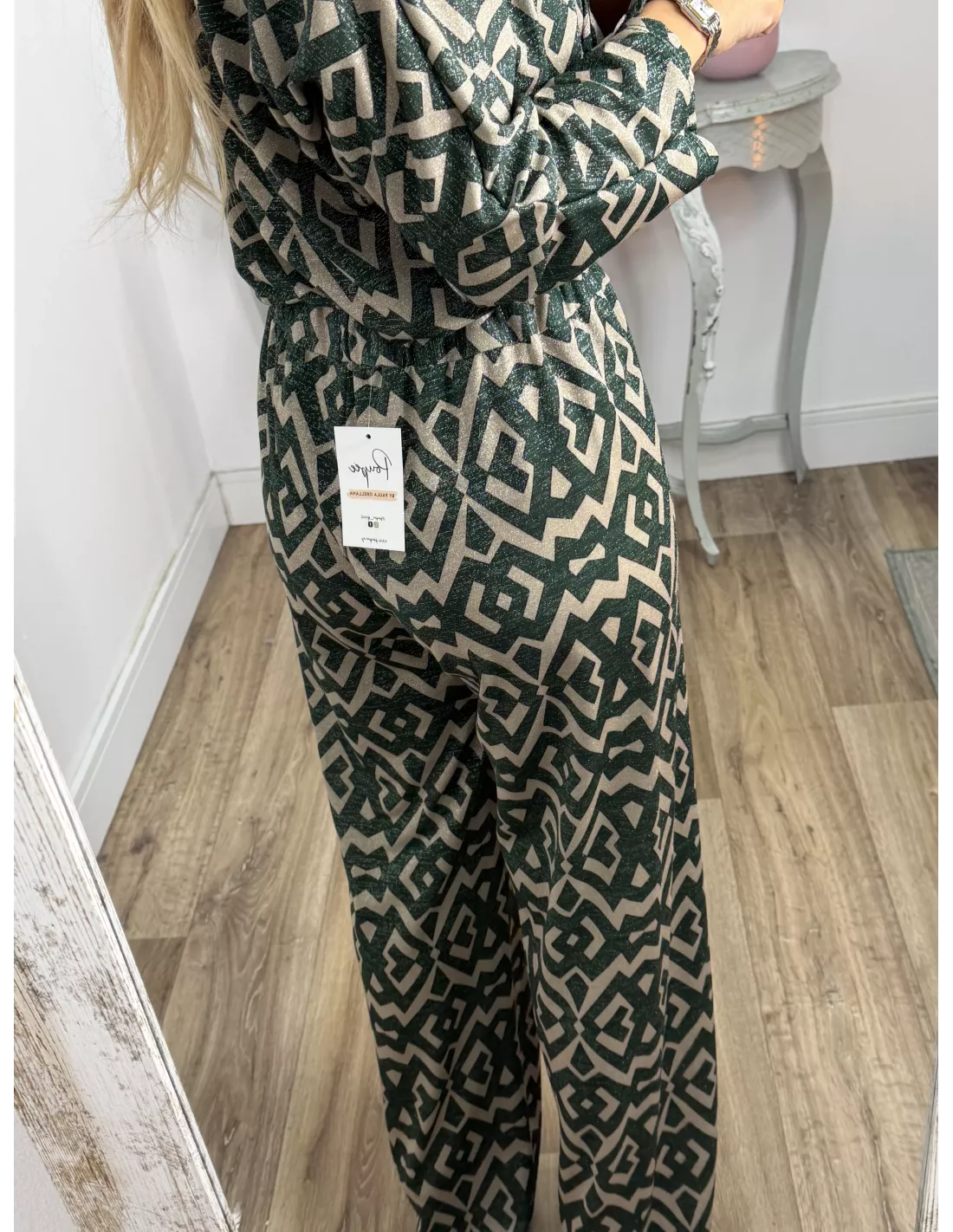 Conjunto brillo estampado verde y arena