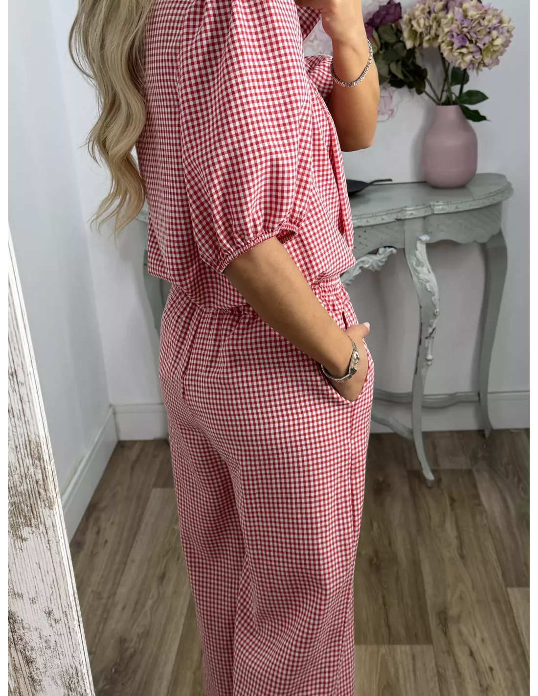 Conjunto camisa y pantalón vichy rojo