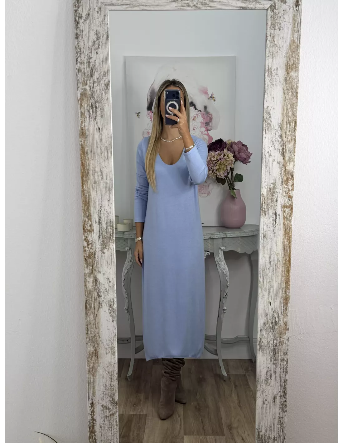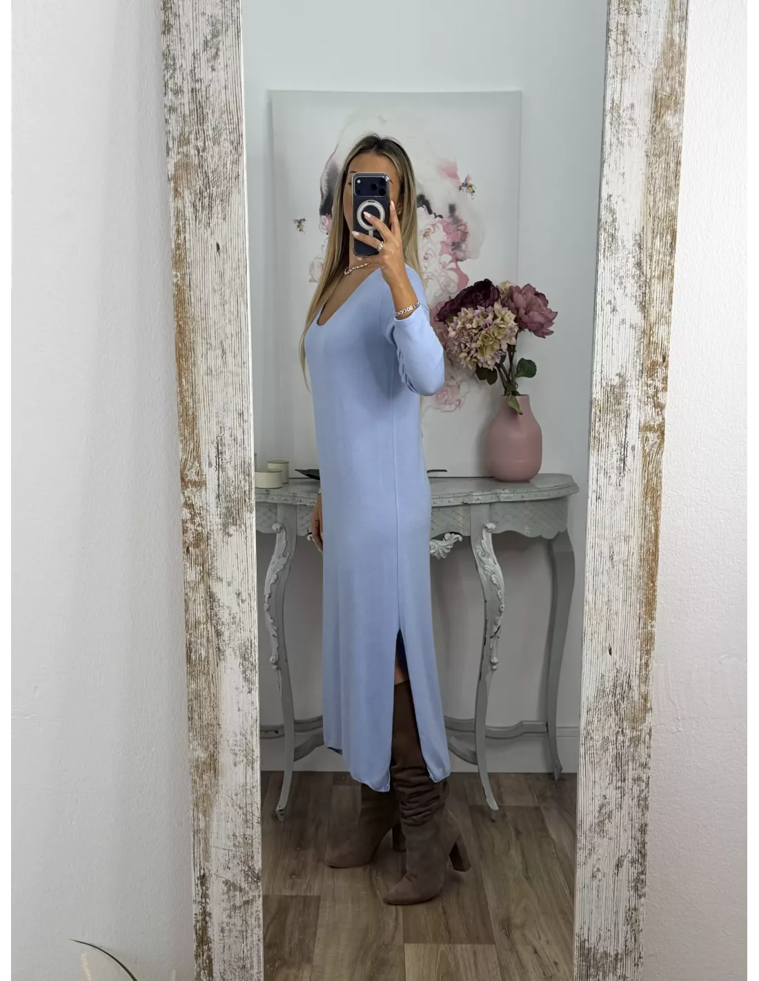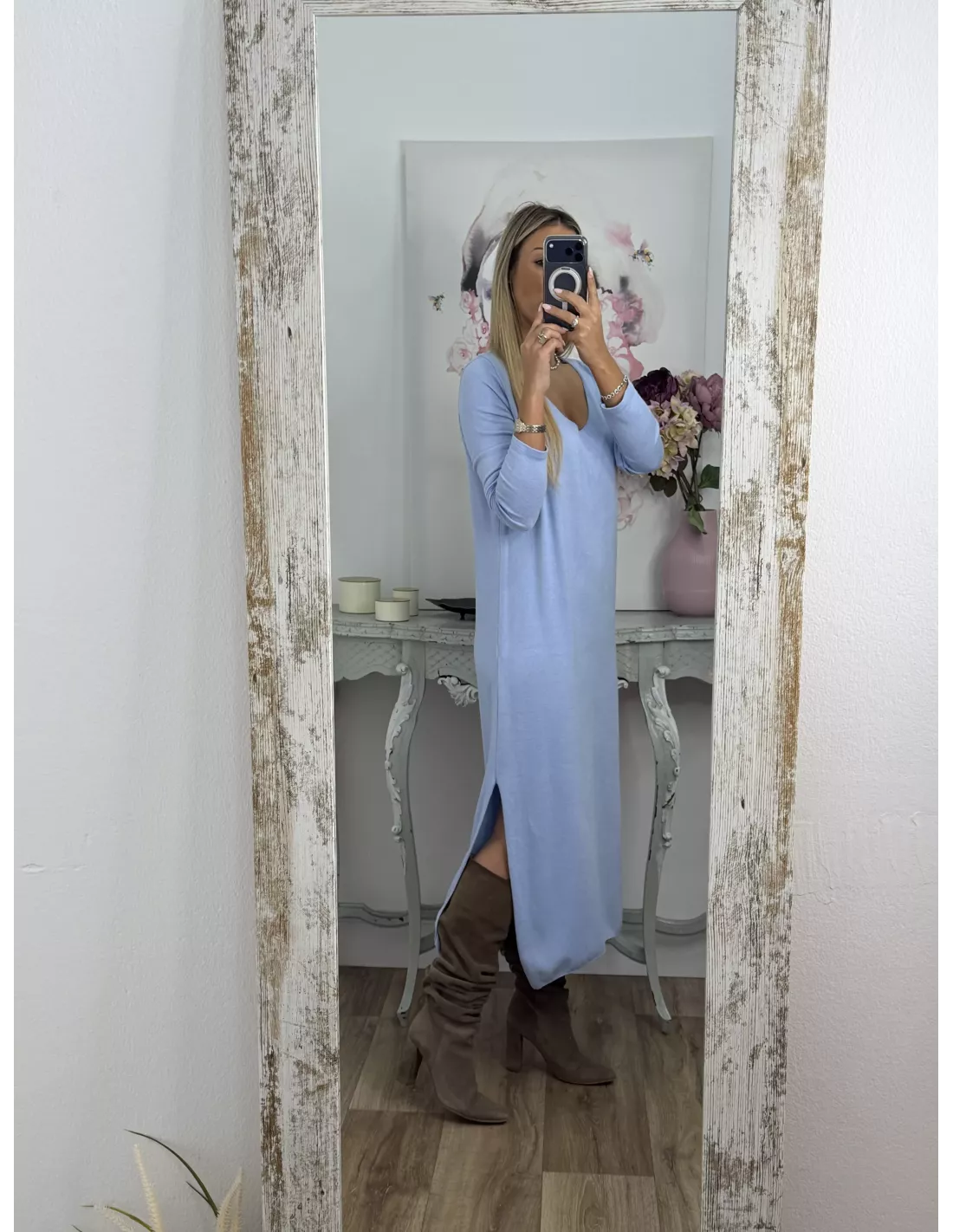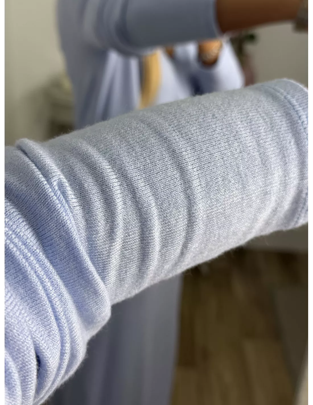 Conjunto cardigan y vestido punto azul celeste