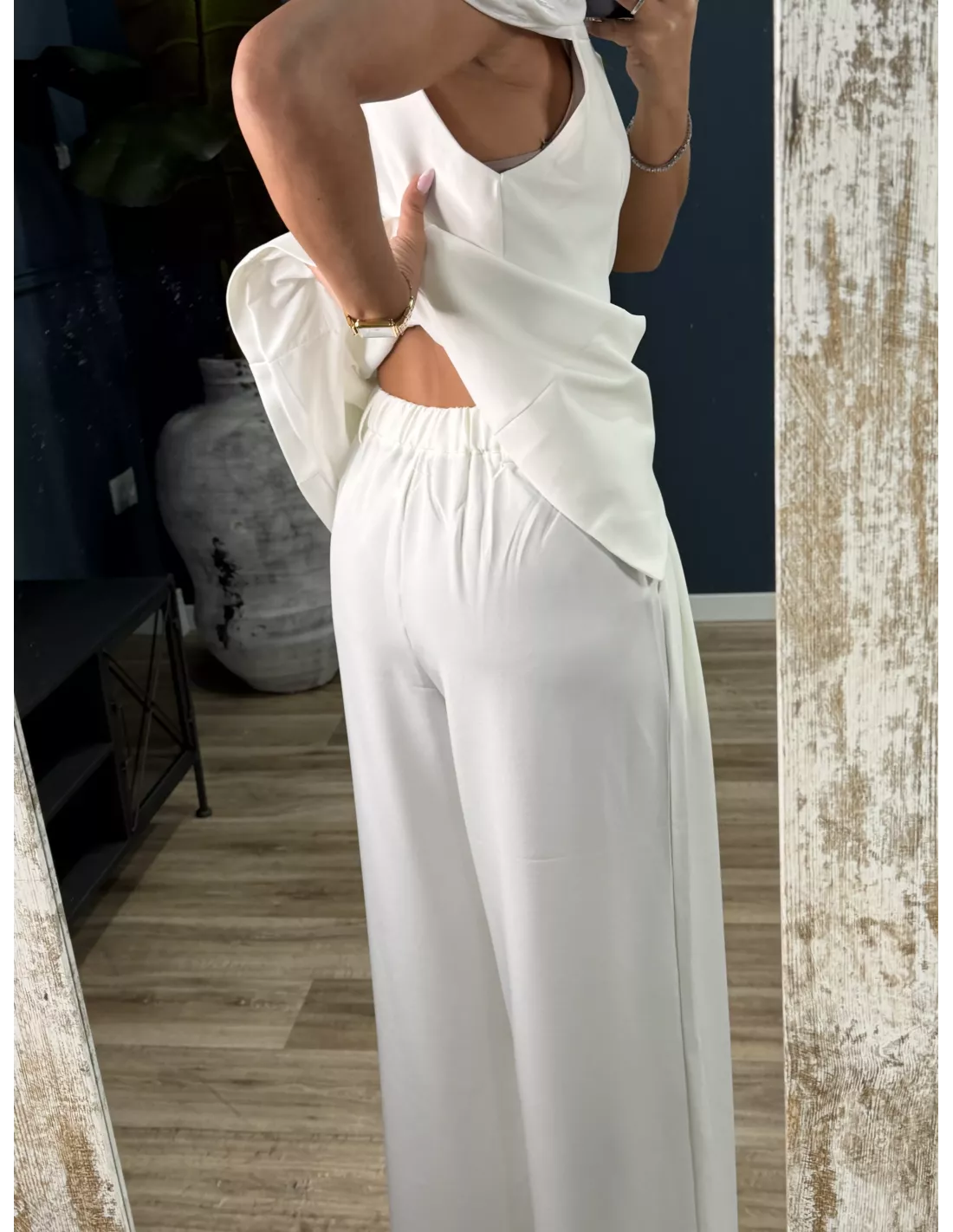 -Pantalón: cintura 33 cm, cadera 55 cm, largo 105 cm