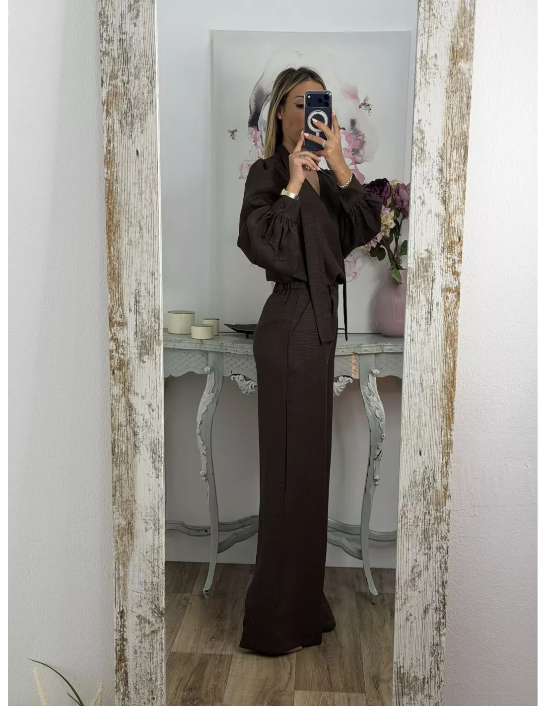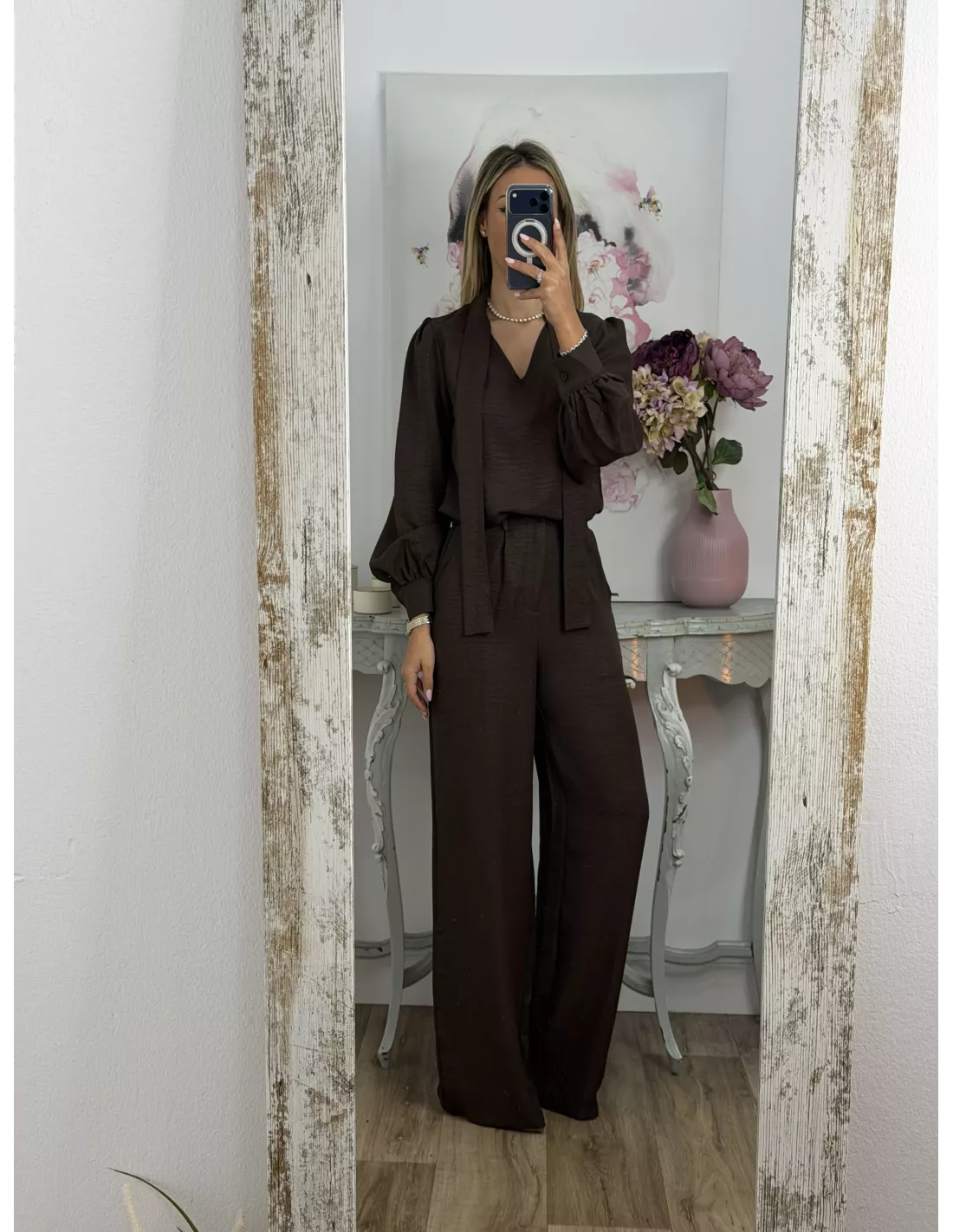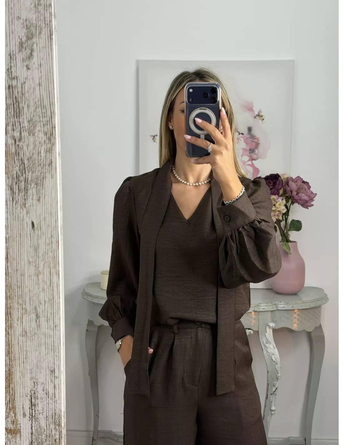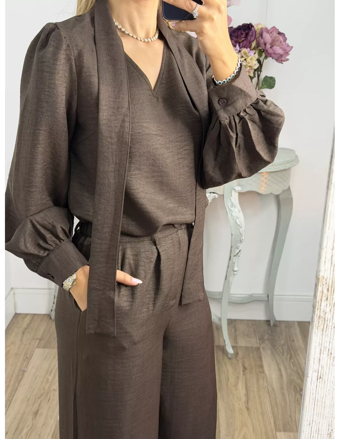 Conjunto lazada camisa marrón