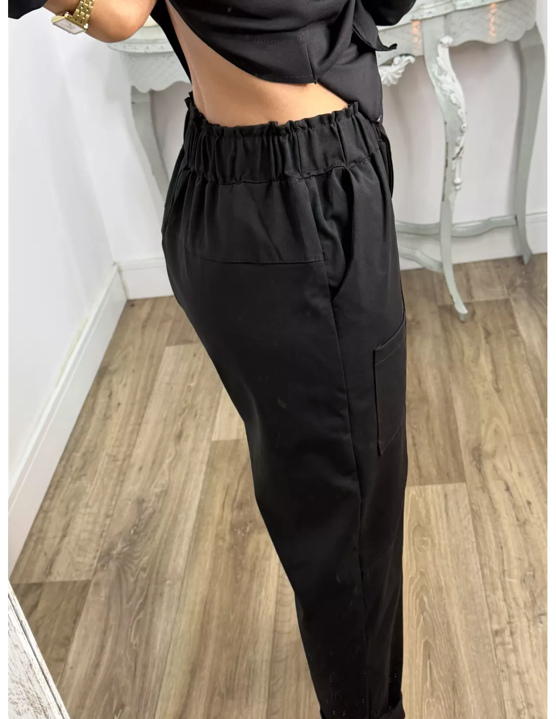 -Pantalón: cintura 38 cm, cadera 49 cm, largo 97 cm