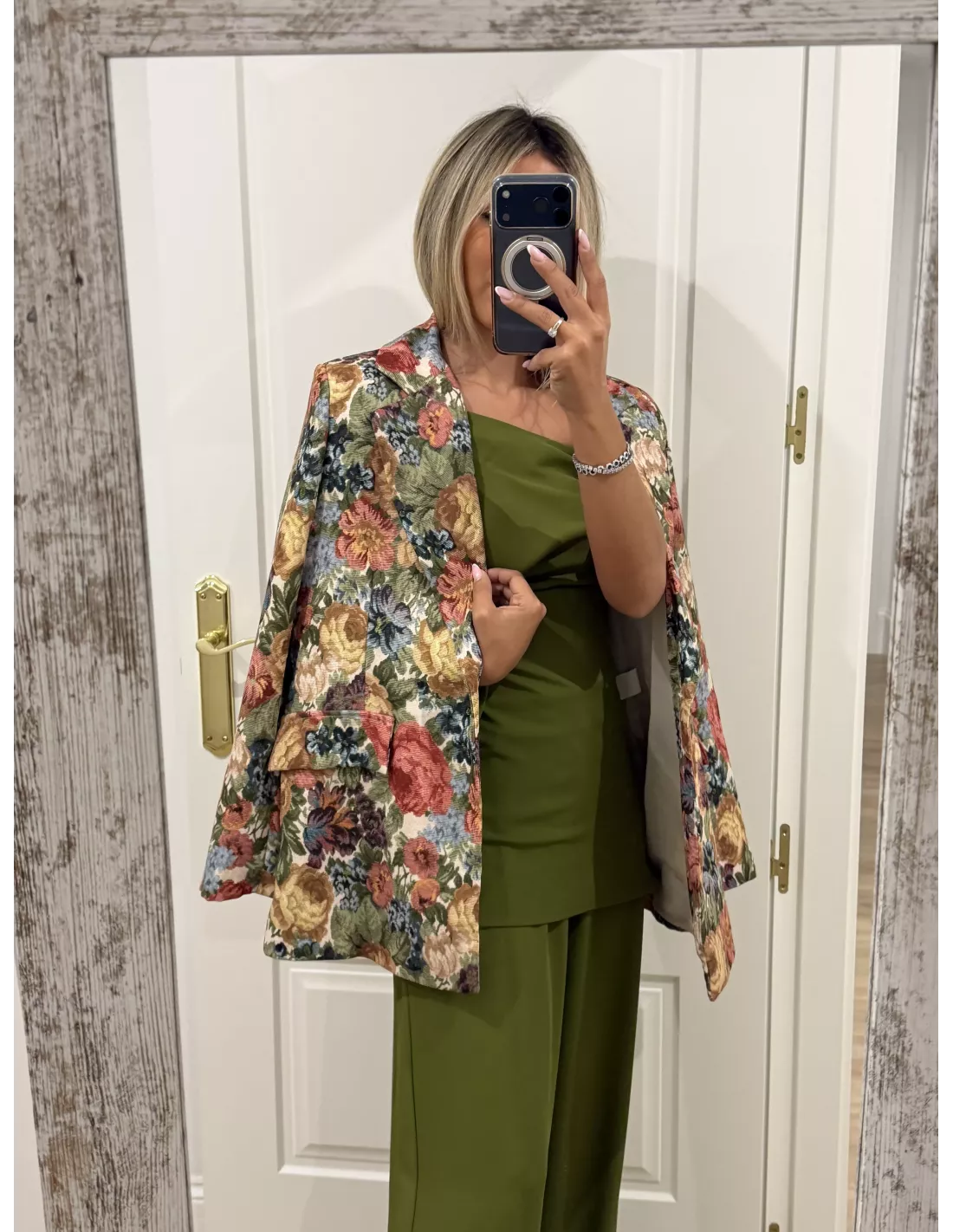 La modelo lleva puesta la talla S, ella utiliza de forma habitual talla XS-S y mide 1,60 cm