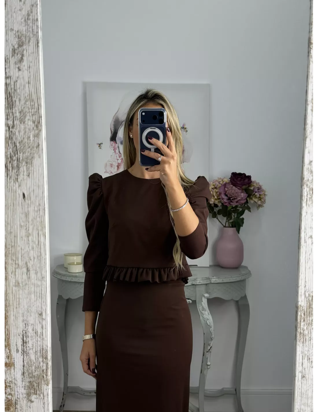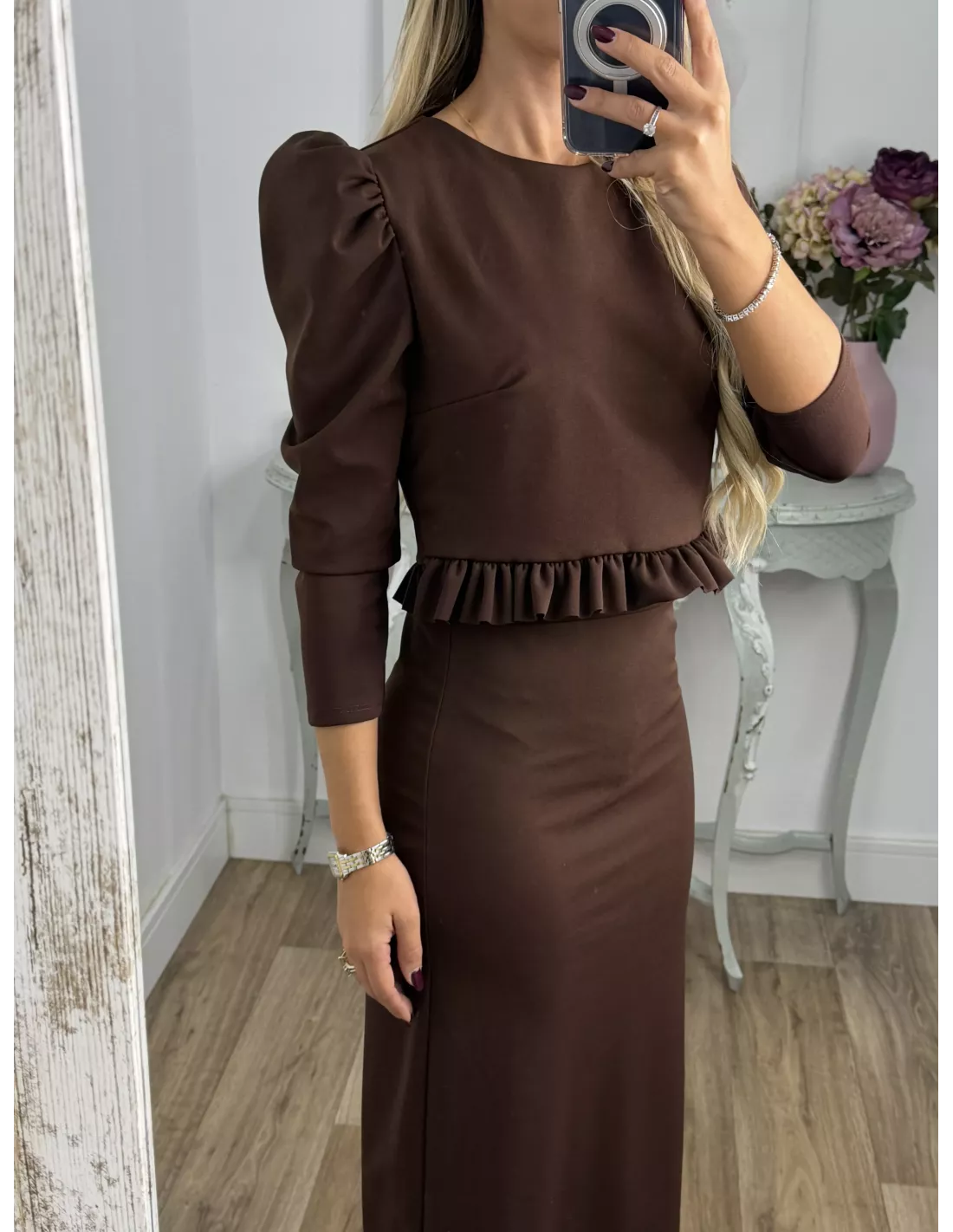 Conjunto Kesar liso chocolate