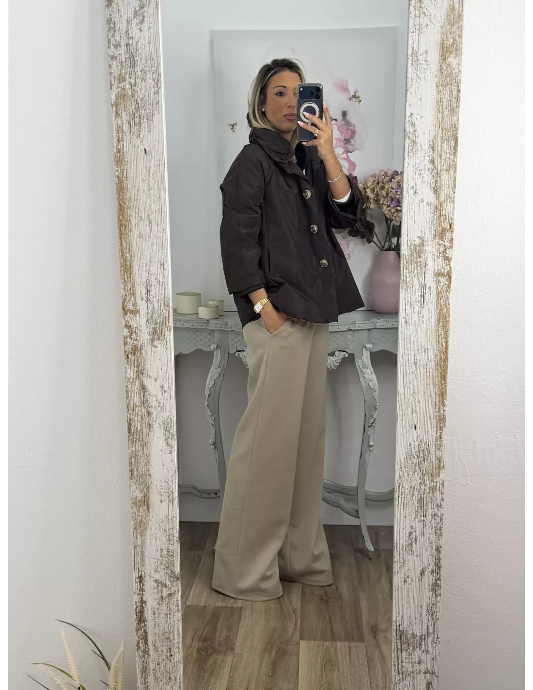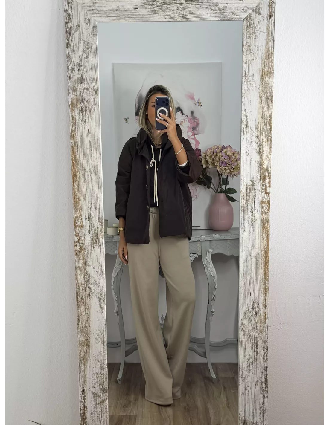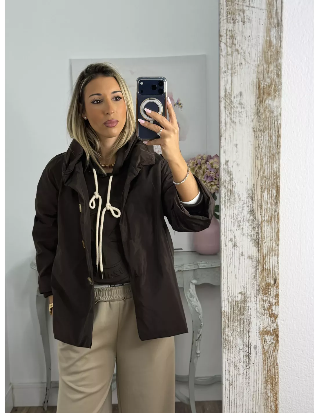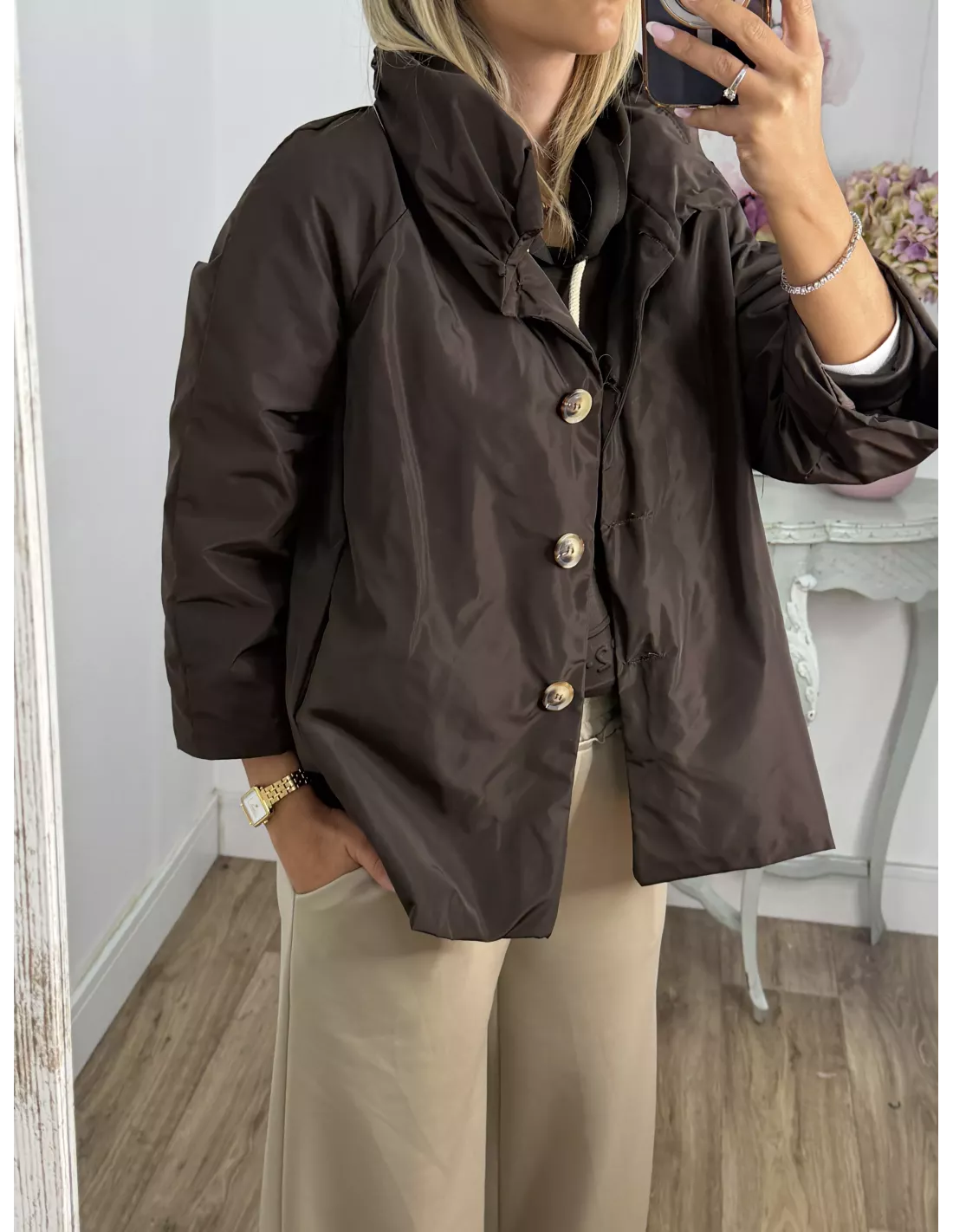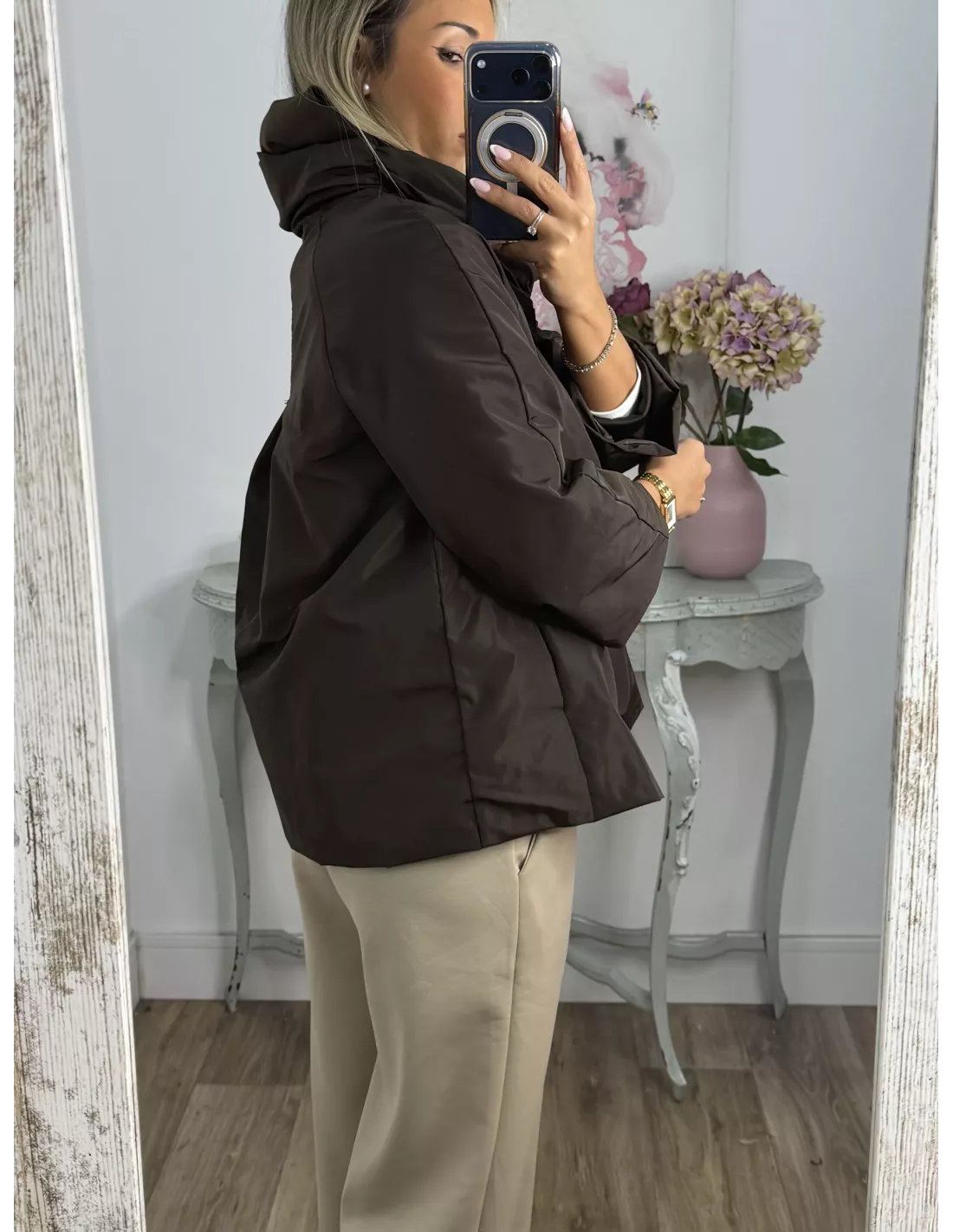 Cortavientos de cuello chimenea, que tiene bolsillos y va forrado. Tiene manga francesa.