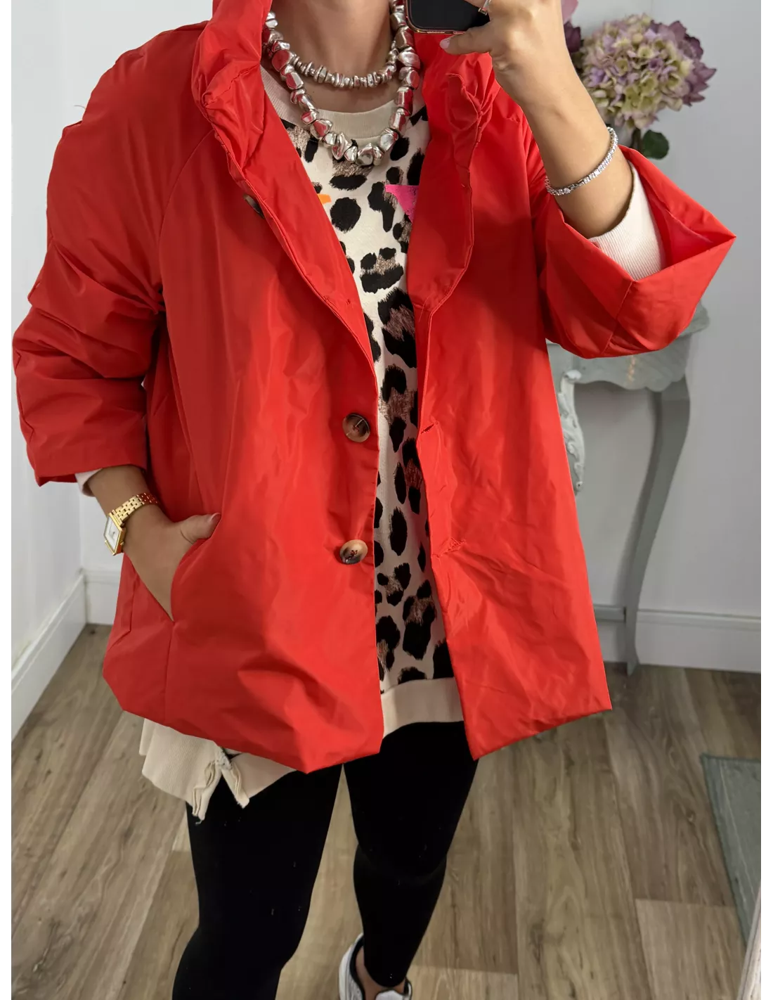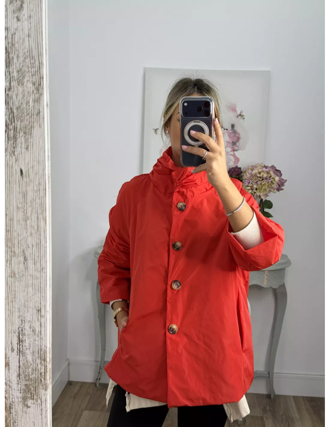 Cortavientos cuello chimenea rojo