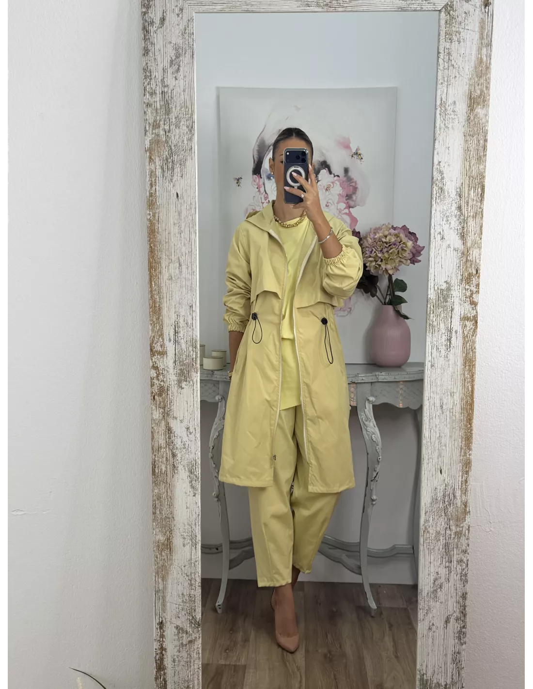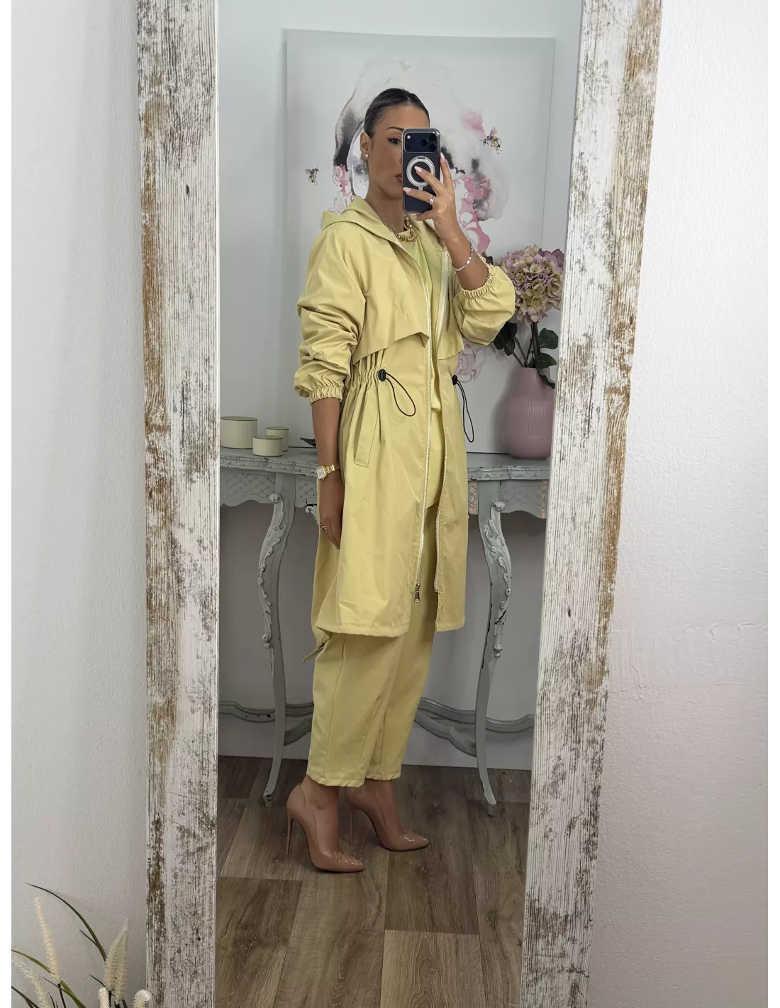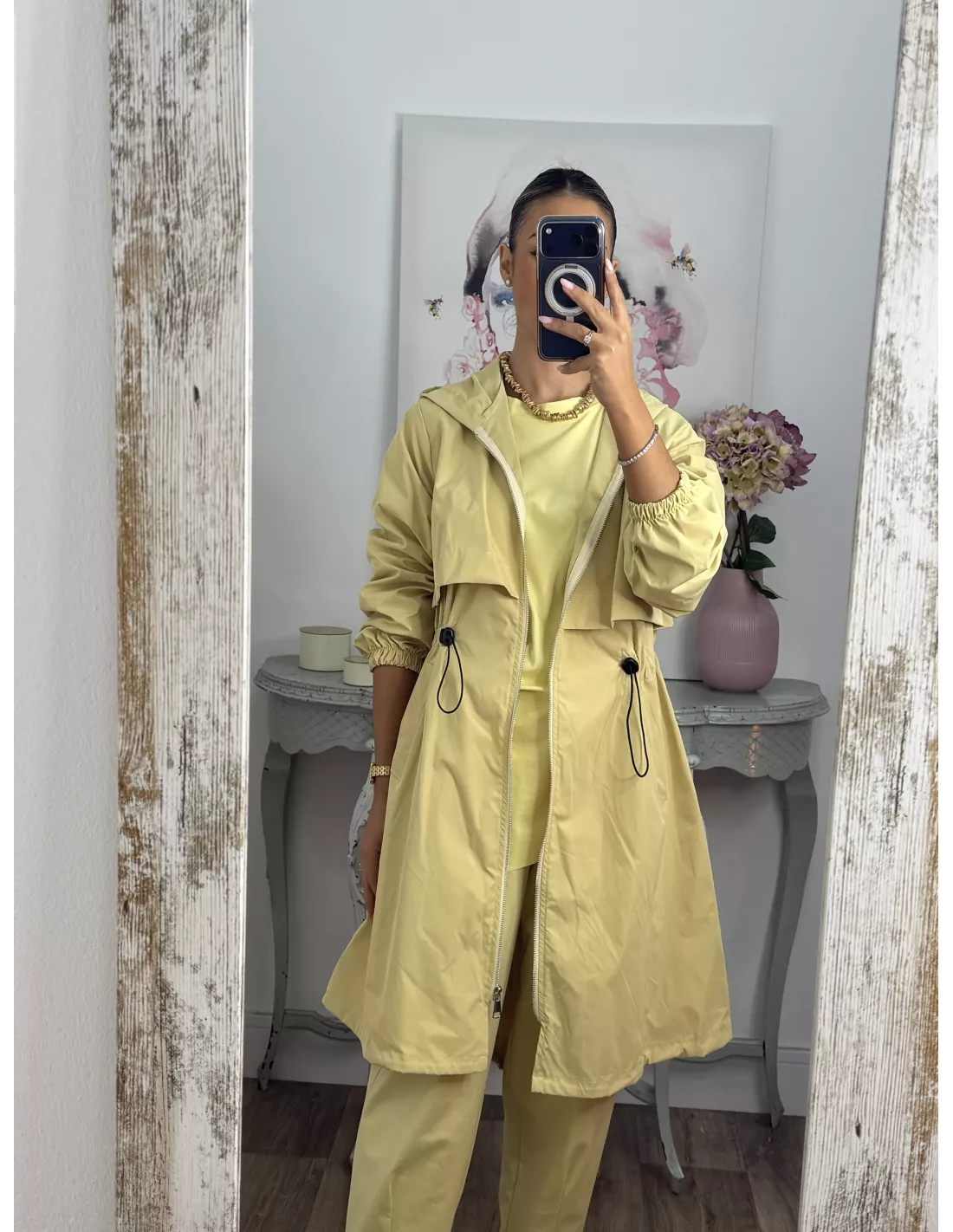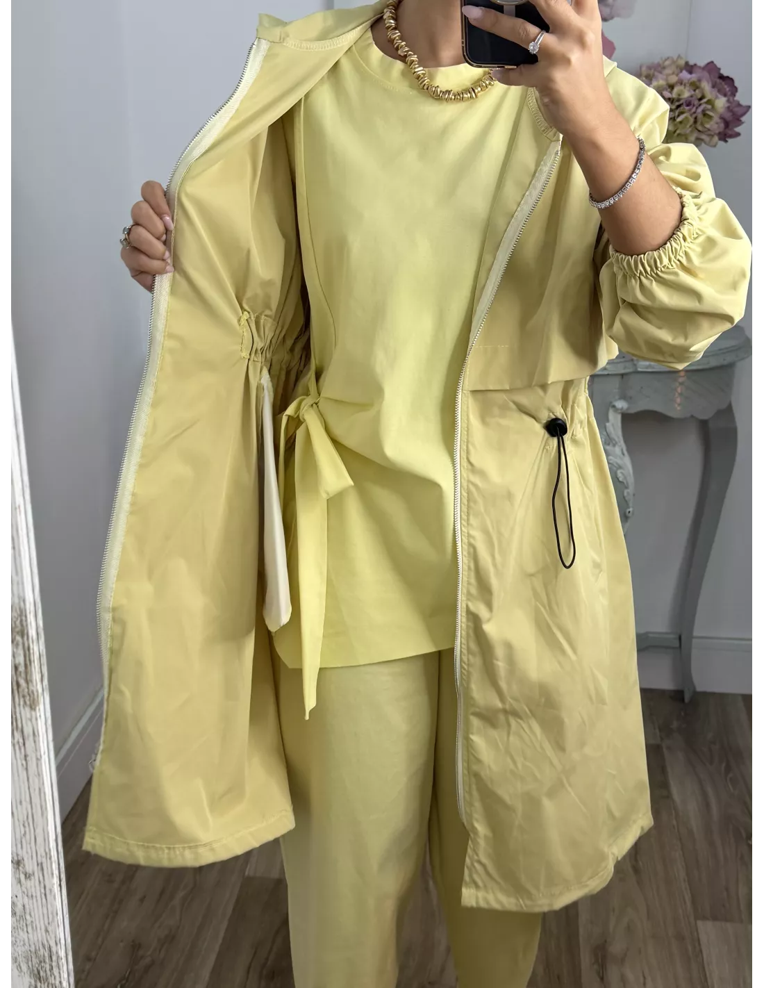 Cortavientos frunce cintura amarillo