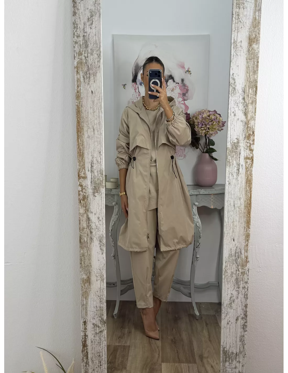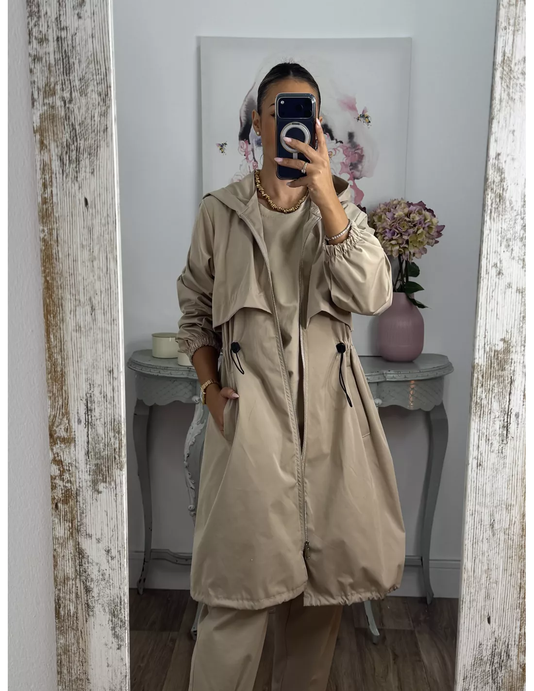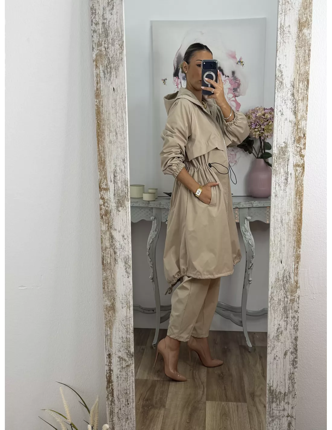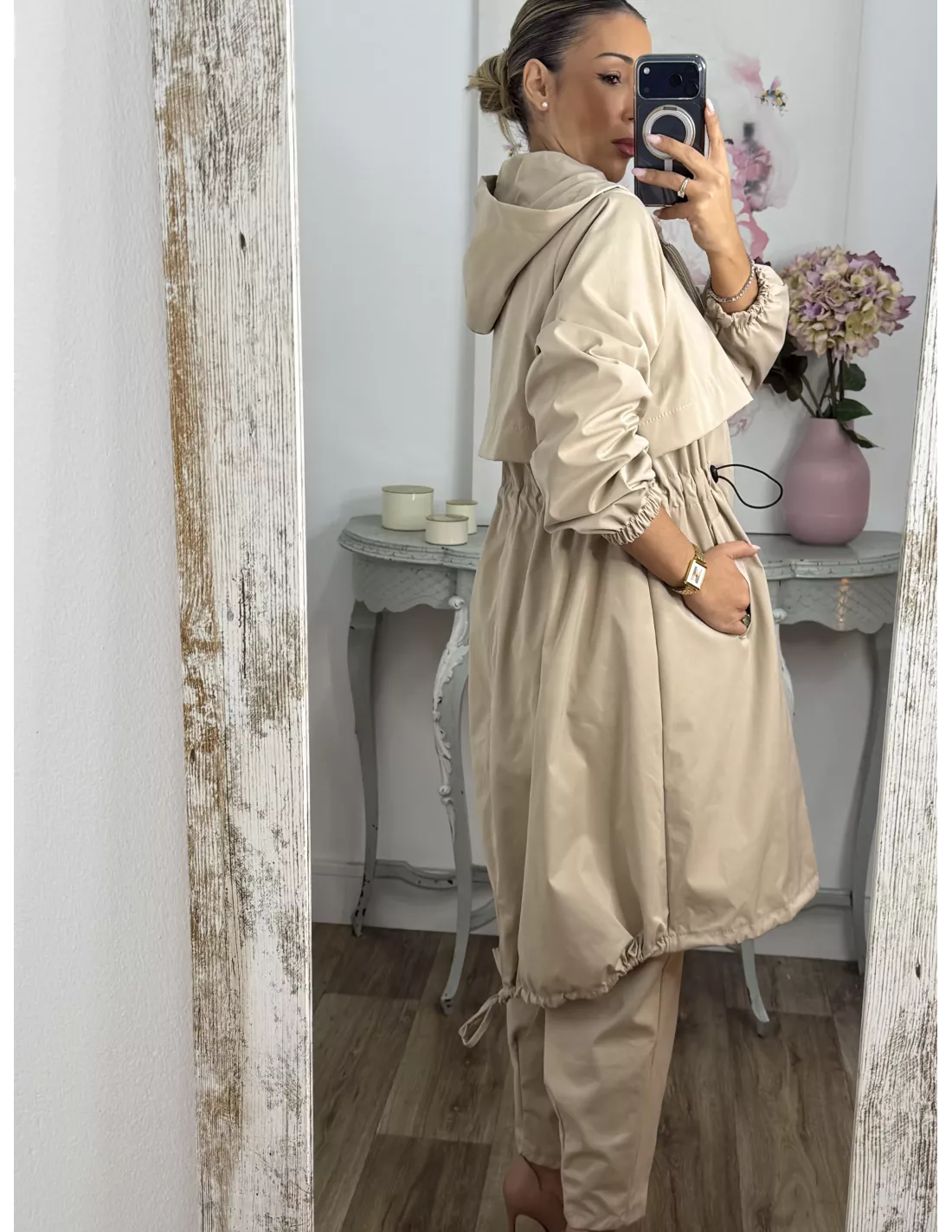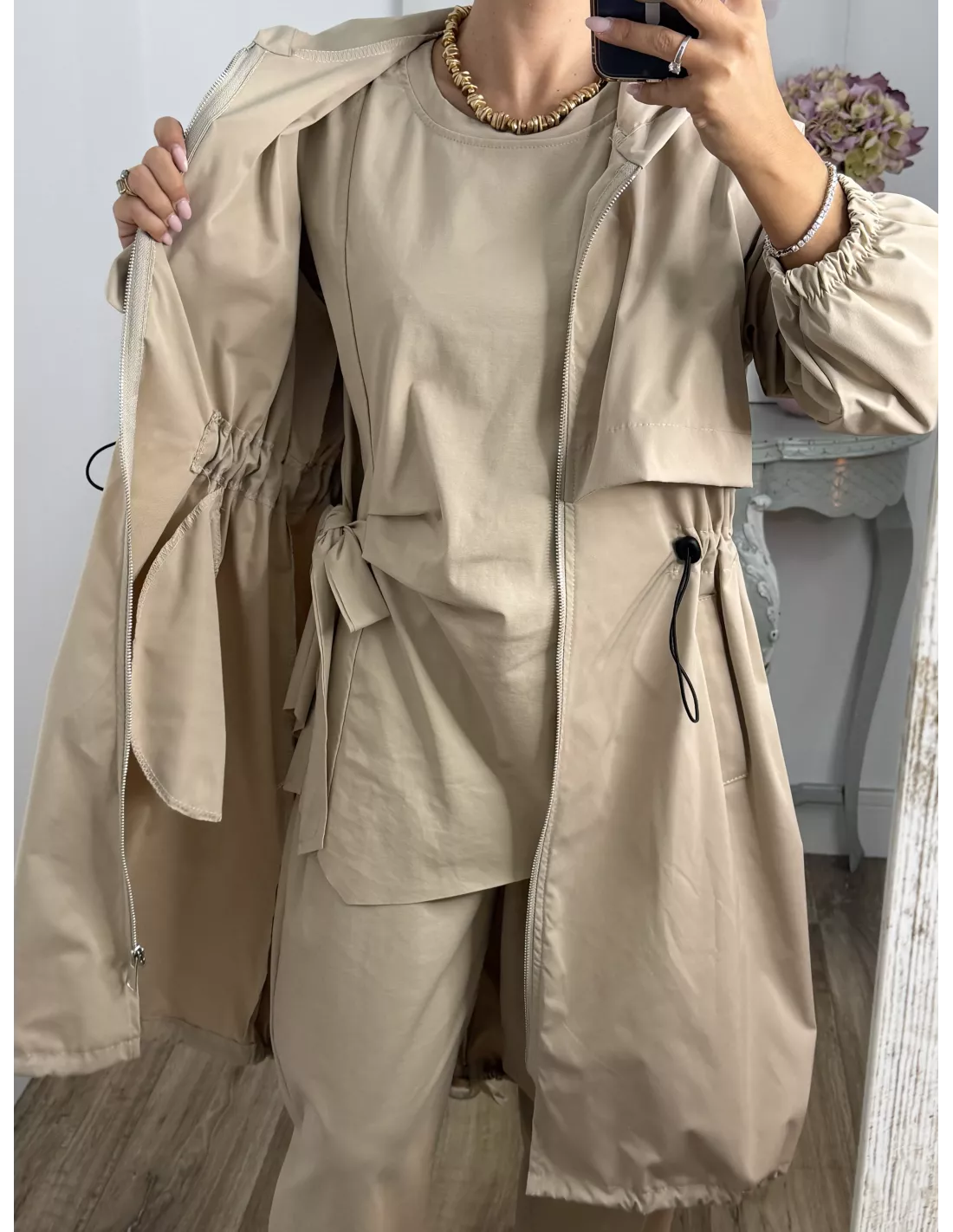 Cortavientos frunce cintura beige