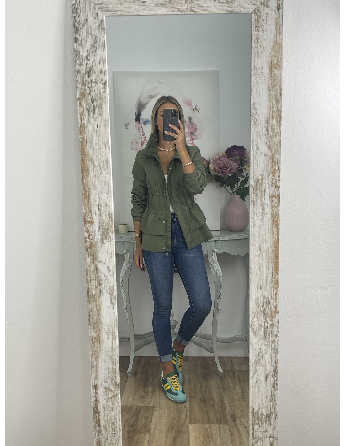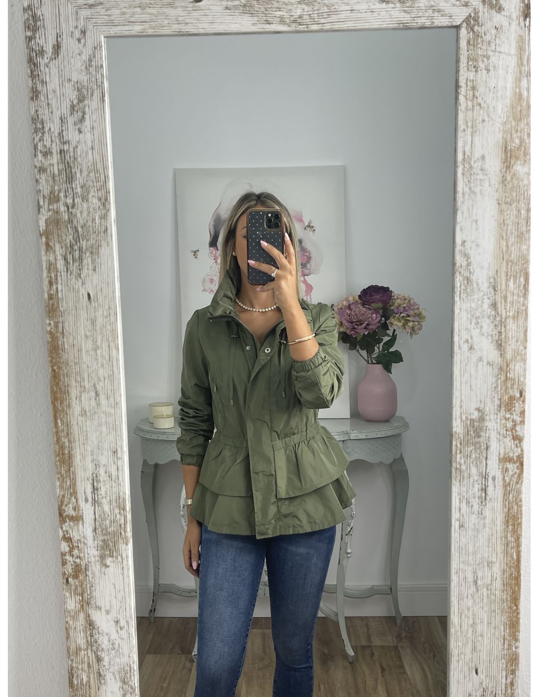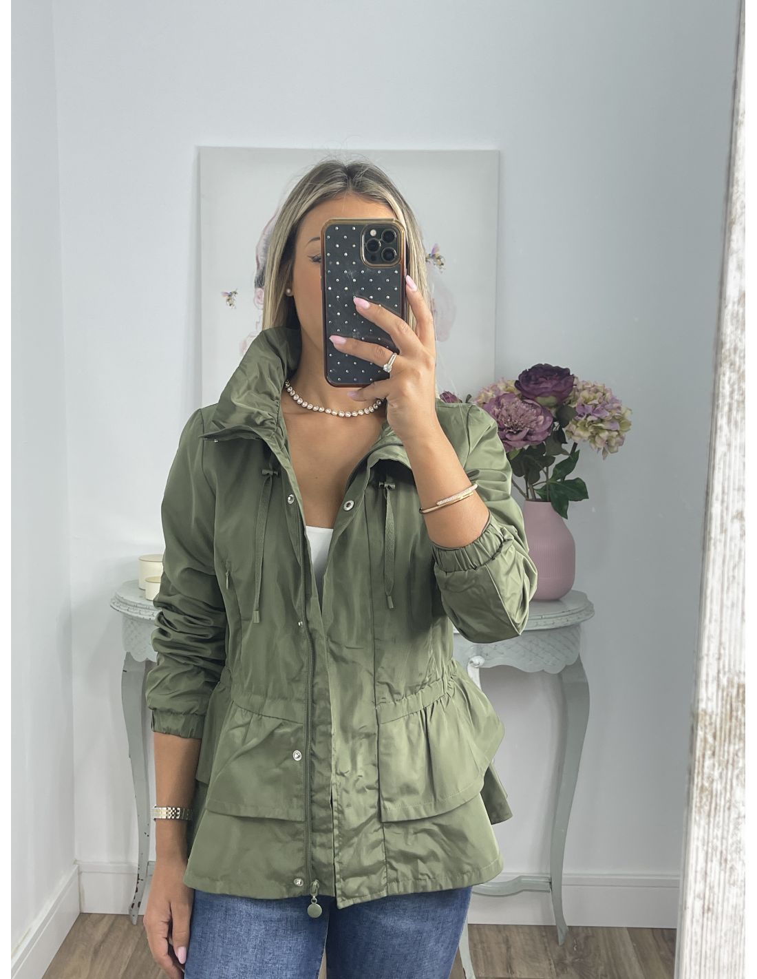 Cortavientos que se cierra con cremallera, va forrado y tiene corte Peplum,