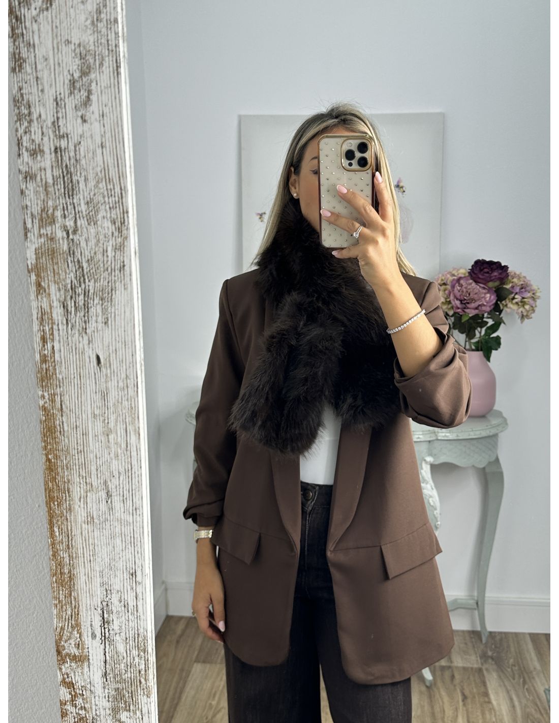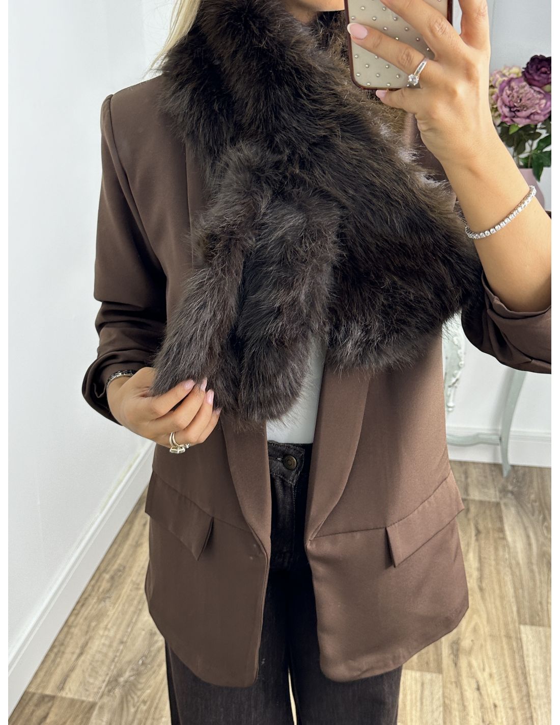 Cuello chocolate pelo sintético