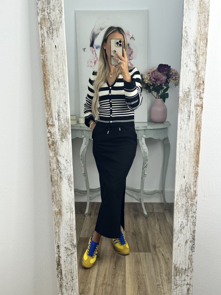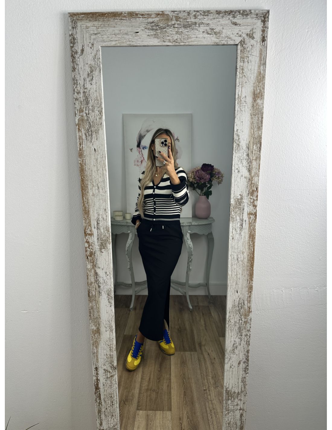 La modelo lleva puesta la talla S, ella utiliza de forma habitual la talla xs-s y mide 1,60cm