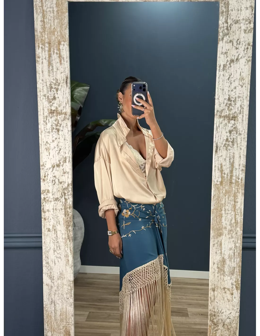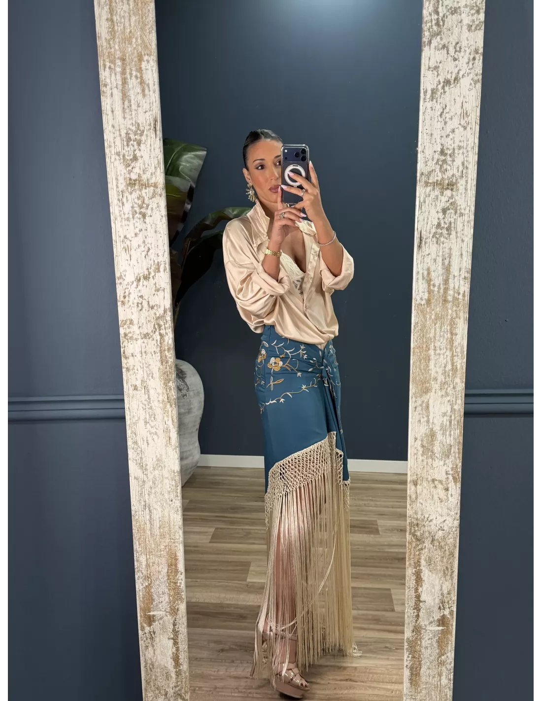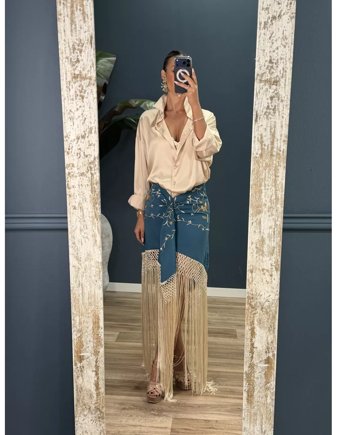 Falda azul borda con flecos