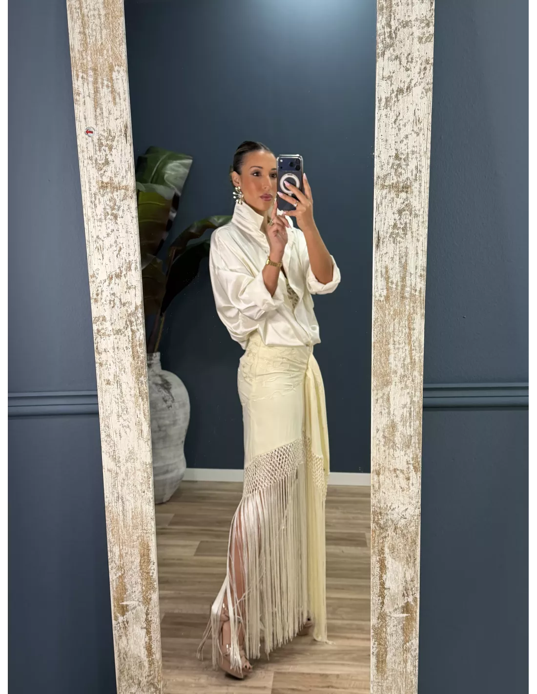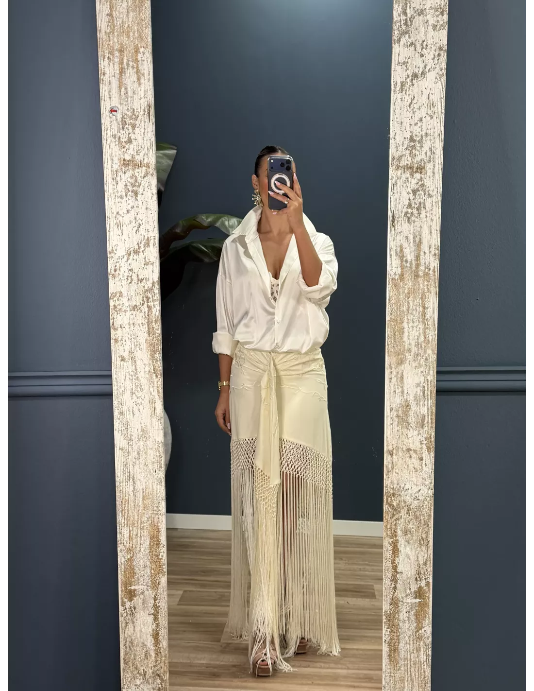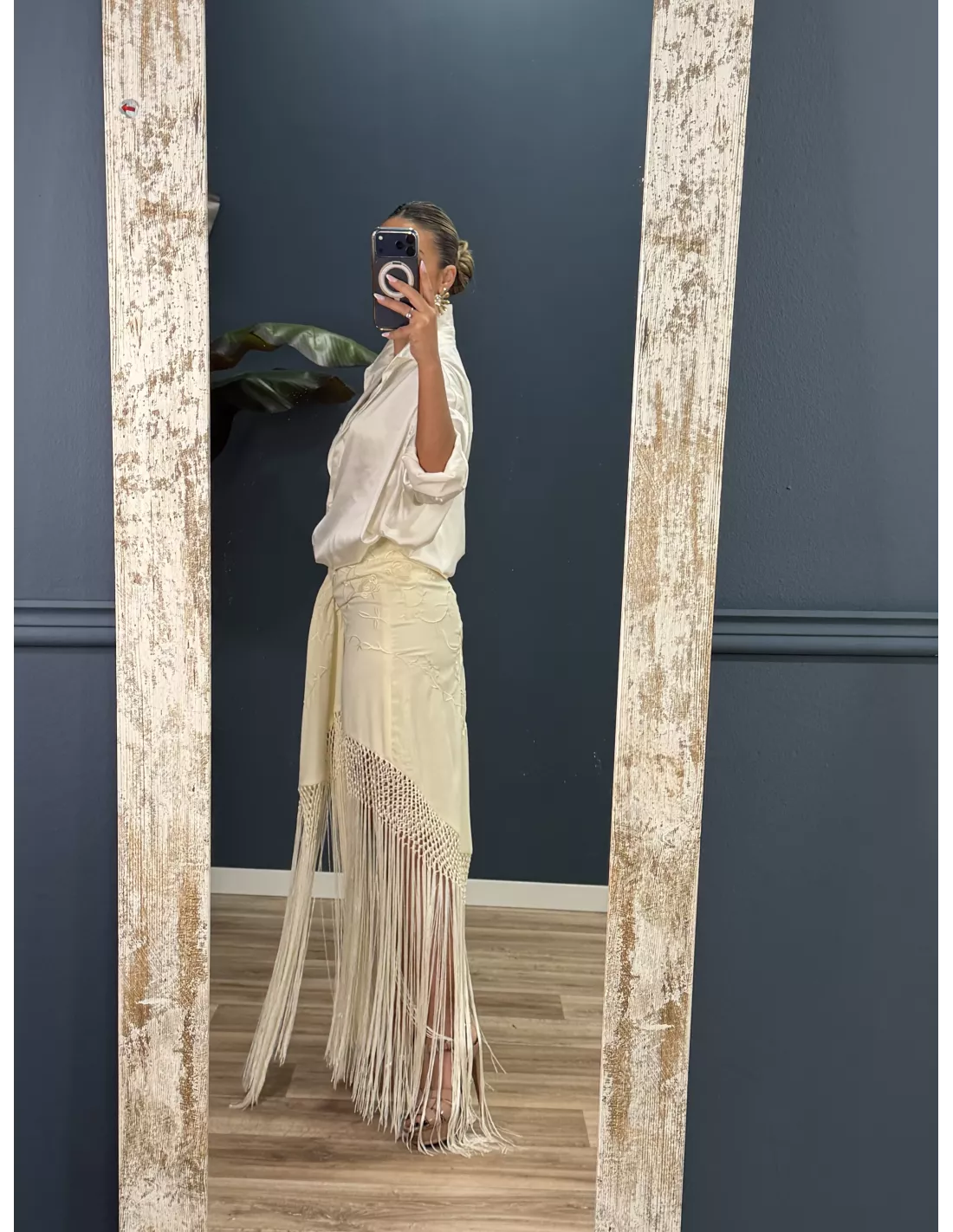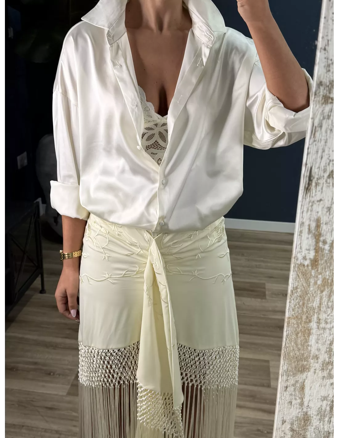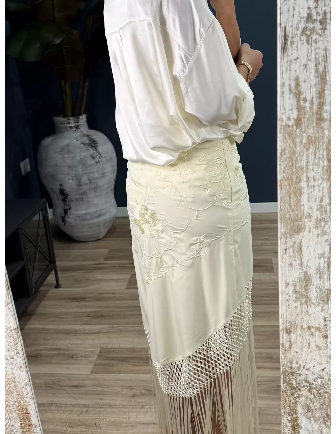 Falda blanca borda con flecos