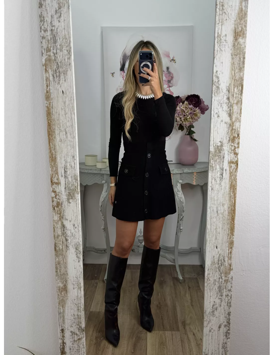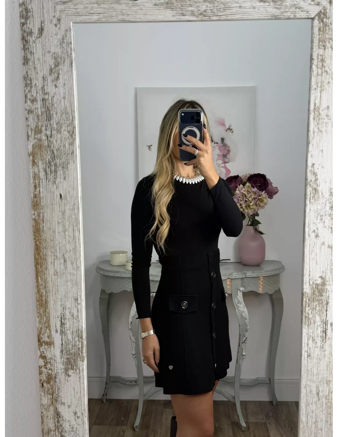 Falda de punto con botones negra