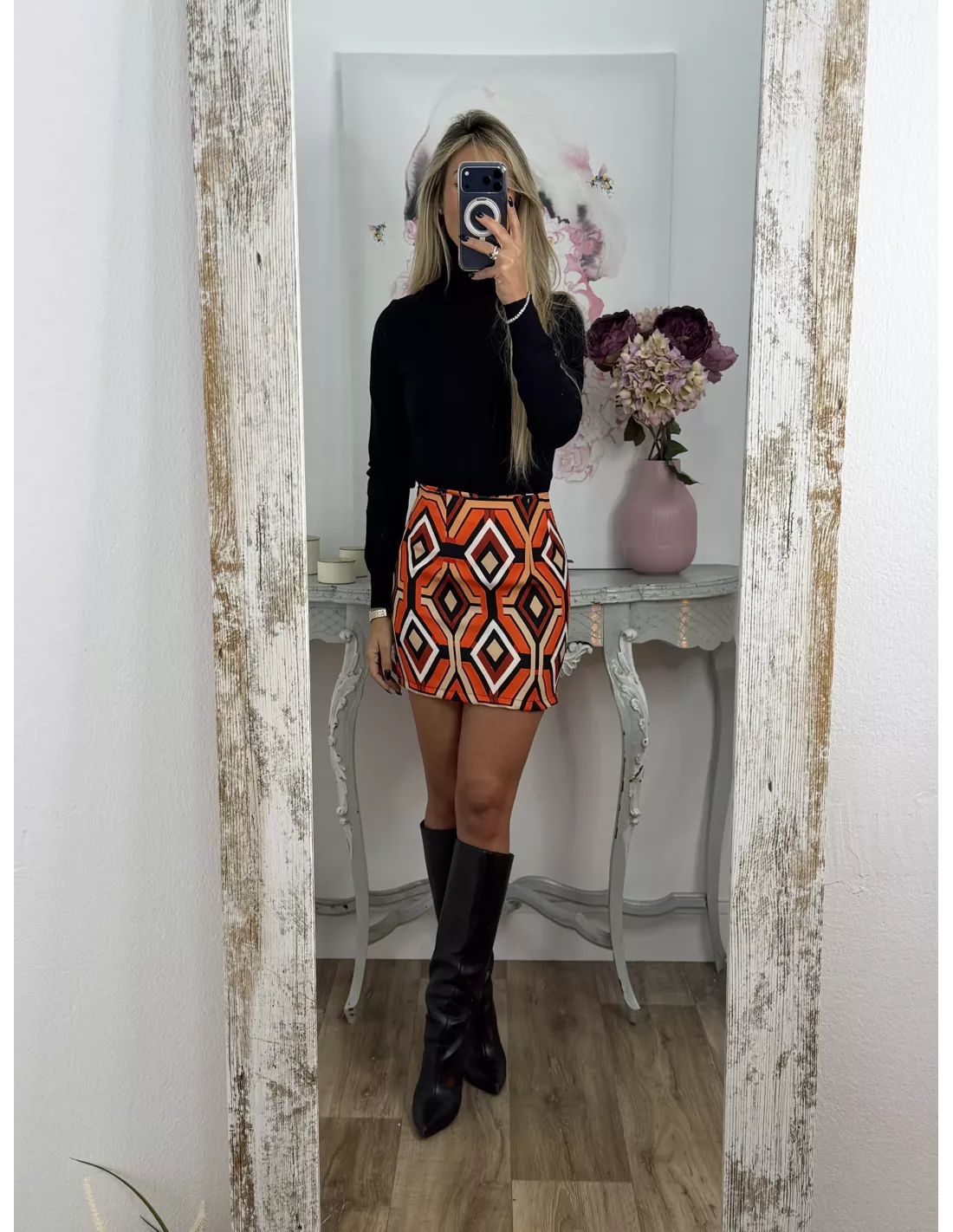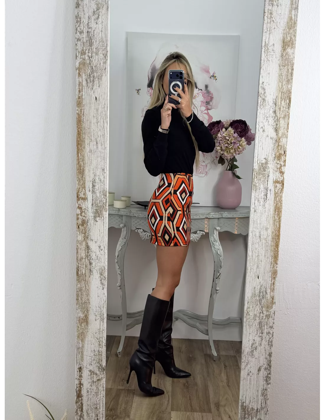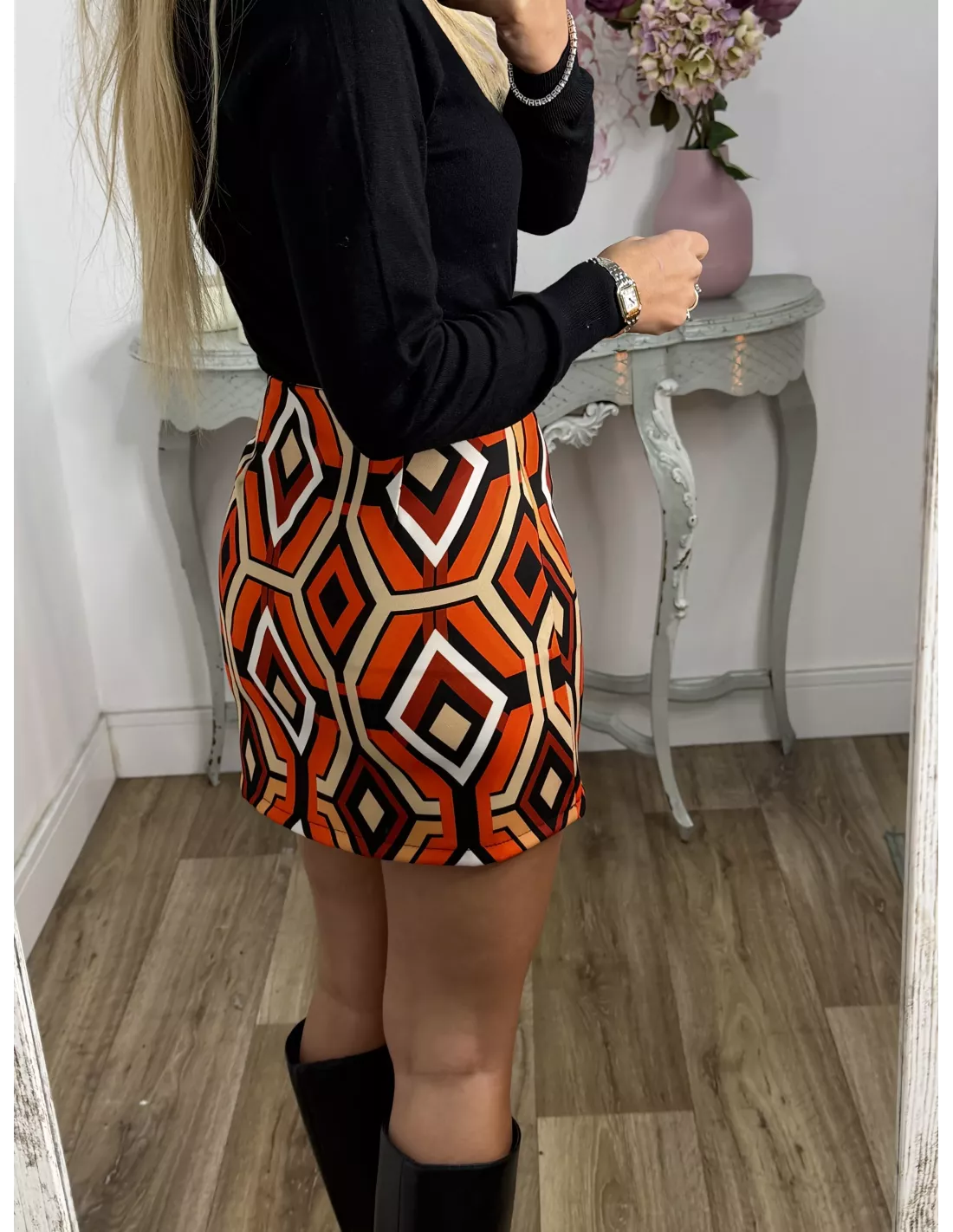 Falda te corte recto que se cierra con cremallera invisible en el lateral. Tiene pinzas tanto en la parte delantera como en la parte de atrás. No va forrada.