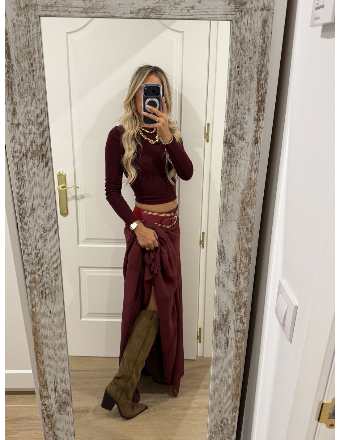 La modelo lleva puesta la talla S, ella utiliza de forma habitual la talla xs-s y mide 1,60cm